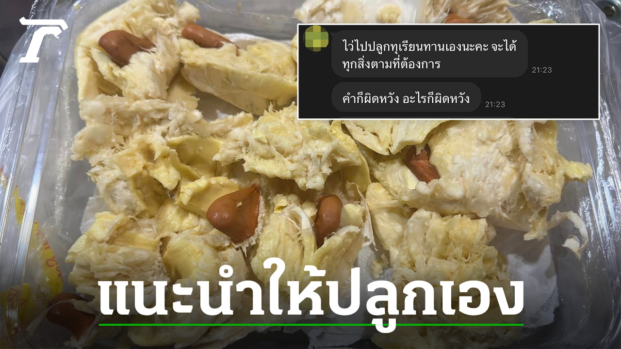 ลูกค้าผิดหวังหนัก สั่งซื้อทุเรียนออนไลน์ ได้เนื้อเละไม่ตรงตามที่สั่ง ทักร้านหวังส่งเคลมเจอ แม่ค้าตอกกลับ ให้ไปหาซื้อปลูกเอง ลั่นของมันไม่ดีจากภายใน พระอรหันต์ยังบอกไม่ได้เลย