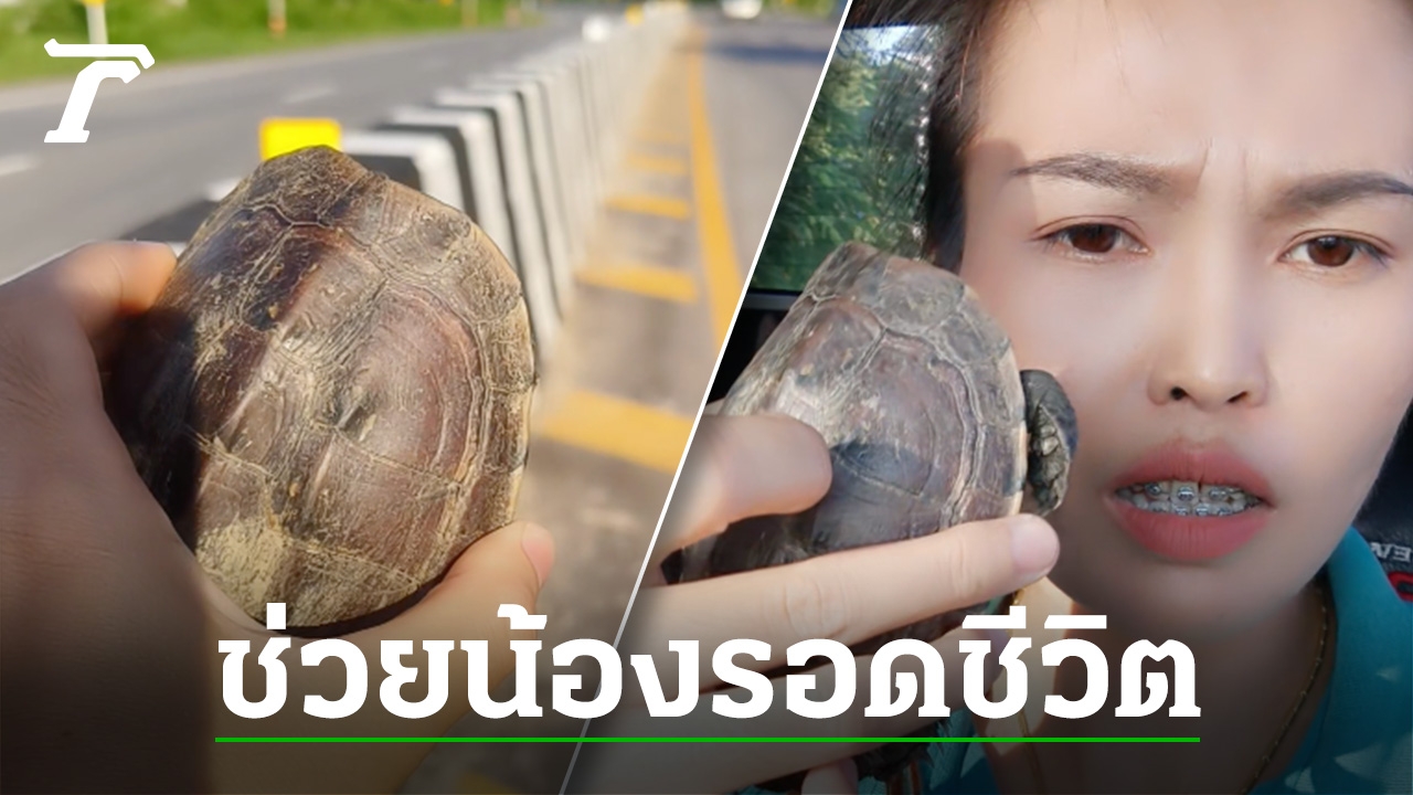 สาวแชร์คลิป เล่านาที จอดรถวิ่งข้ามถนน ไปช่วยชีวิต "น้องเต่า" เฉียดโดนรถพ่วงทับไปนิดเดียว ก่อนนำไปปล่อยลงแม่น้ำโขง
