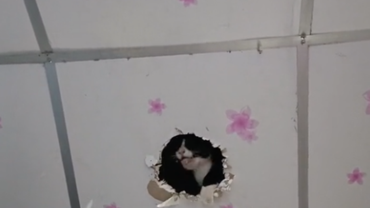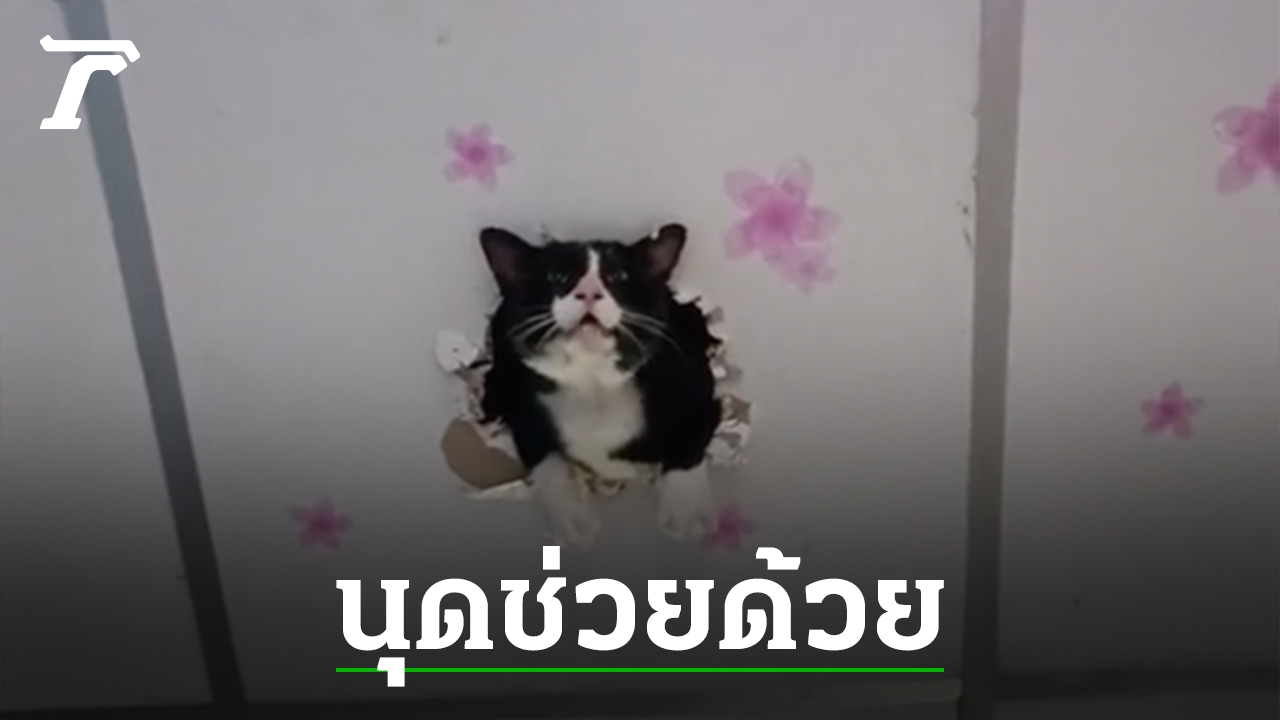 ทาสหัวจะปวด "เจ้าเฉาก๊วย" แมวเหมียวตัวแสบ แอบแม่วิ่งขึ้นไปเล่นบน "เพดานบ้าน" เป็นประจำ สุดท้ายกัดฝ้าจนตัวทะลุออกมา ทำโซเชียลแห่แซวต้องไปอยู่วัดซะแล้ว