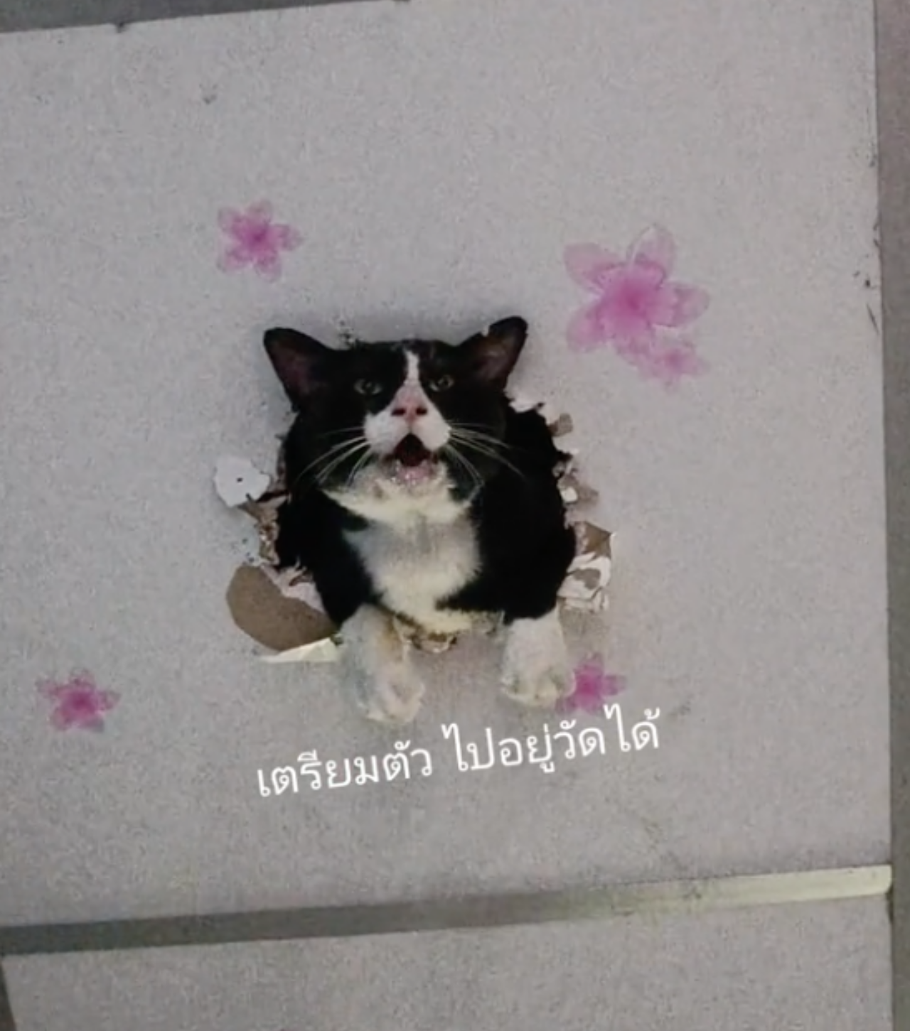 วันที่ 31 สิงหาคม 2566 ผู้สื่อข่าวรายงานว่า กลายเป็นคลิปไวรัล ที่ถูกแชร์ในโลกออนไลน์ เมื่อผู้ใช้บัญชี TikTok@chayalit19 ได้บันทึกเหตุการณ์ขณะที่เจ้าเหมียวตัวแสบ กำลังตะกุยอยู่บนฝ้าเพดาน และส่งเสียงร้องขอความช่วยเหลือ พร้อมระบุข้อความประกอบคลิปว่า เตรียมตัวไปอยู่วัดได้