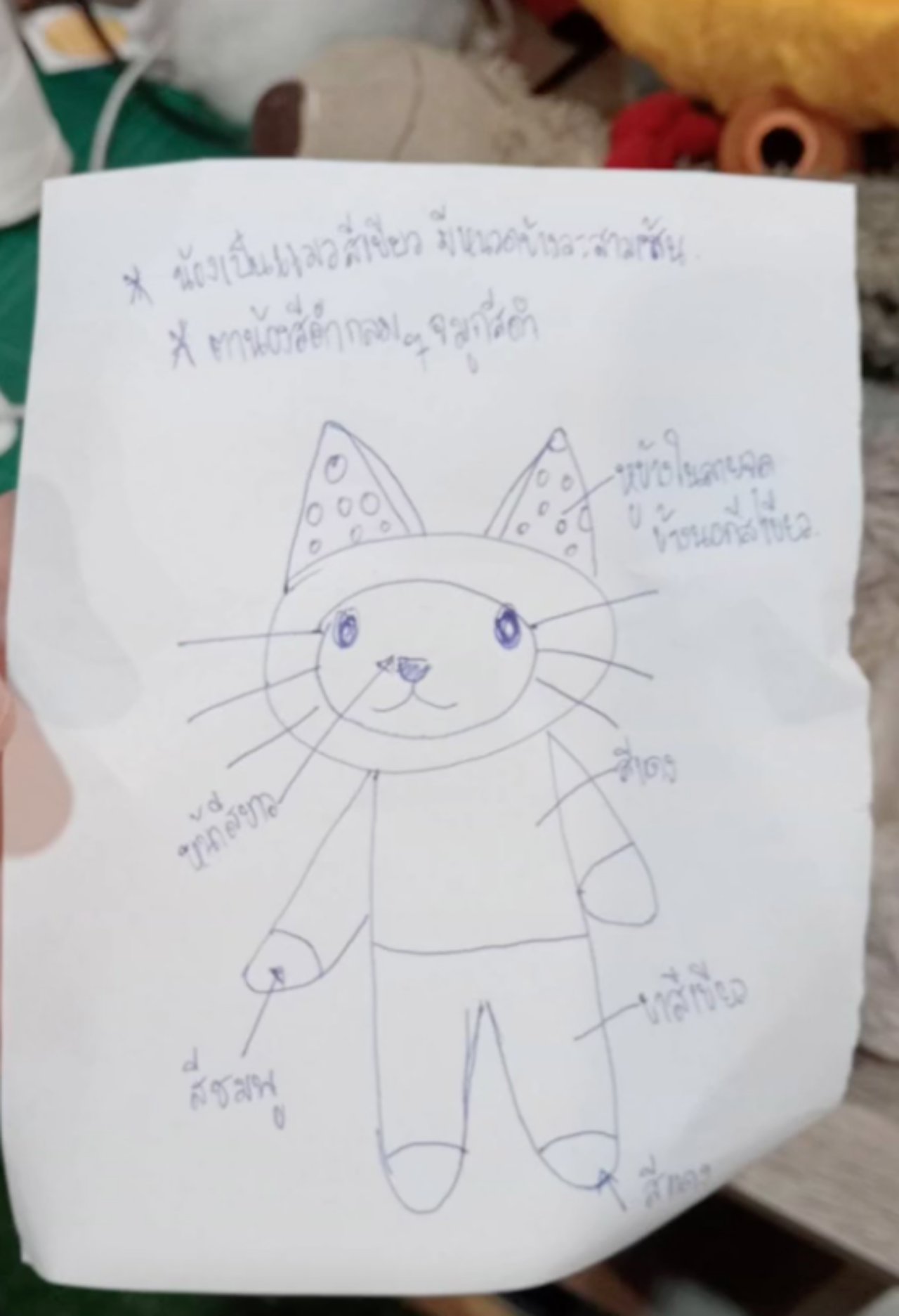 ซึ่งทางลูกค้าก็ได้ส่งกระดาษที่เขียนรายละเอียดของตุ๊กตาตัวดังกล่าว ว่ามีสีหรือมีเอกลักษณ์อะไรบ้าง รวมถึงวาดภาพประกอบส่งมาให้ดู จนสุดท้ายทางช่างก็สามารถซ่อมตุ๊กตาได้สำเร็จ จนคล้ายเป็นตุ๊กตาตัวใหม่ พร้อมระบุแคปชั่นว่า ซ่อมได้แค่งานที่มีเค้าเดิม แต่นี่คือการแก้ปัญหา