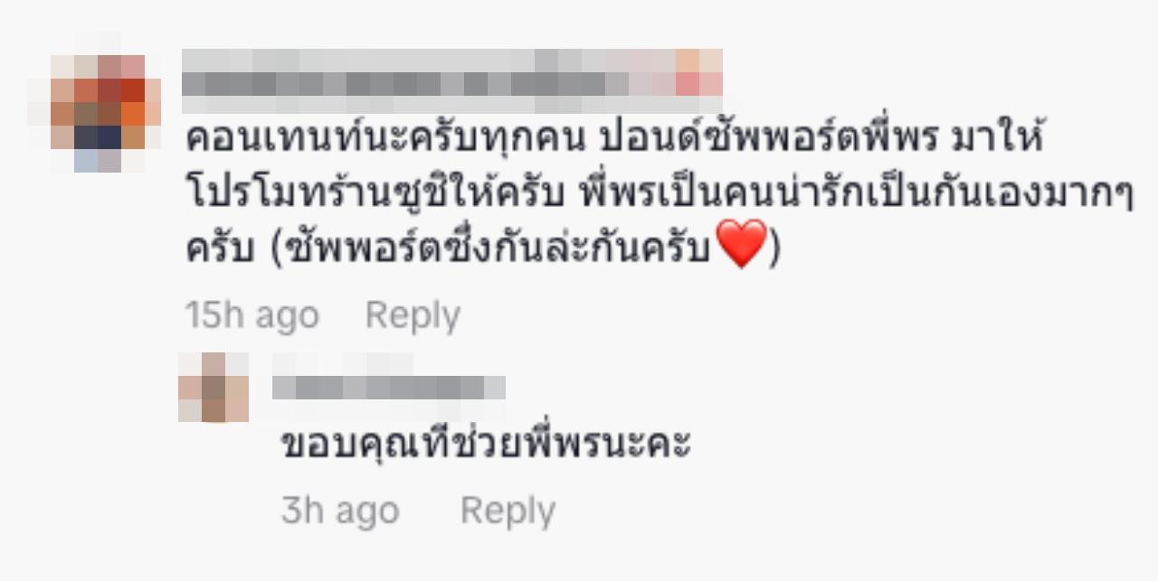 แต่ล่าสุด พบว่า หนุ่มในคลิปดังกล่าว ได้เข้ามาเฉลยว่าเป็นคลิปคอนเทนต์ให้พี่พรมาช่วยโปรโมตร้านขายซูชิ โดยระบุข้อความว่า "คอนเทนต์นะครับทุกคน ปอนด์ซัพพอร์ตพี่พร มาให้โปรโมตร้านซูชิให้ครับ พี่พรเป็นคนน่ารักเป็นกันเองมากๆครับ (ซัพพอร์ตซึ่งกันและกันครับ)" ทำให้ต่อมาได้มีแฟนคลับของพี่พรเข้ามาแสดงความคิดเห็นจำนวนมาก เช่น ถึงจะจ้างไปทำคอนเทนต์ แต่พี่พรได้เงิน มีรายได้ และมีความสุข.
