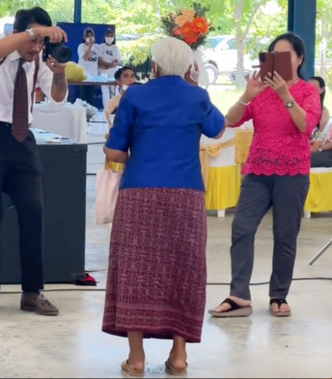 ซึ่งทางเจ้าของคลิปยังได้ระบุแคปชั่นประกอบอีกว่า "คุณยายวัย 90 ปี ออกมาแย่งช่อดอกไม้กับเจ้าสาว พีคในพีค ออกมาว่าพีคแล้ว แต่ได้ดอกไม้ด้วยพีคกว่า คุณยายวัย 90 ปี น่ารักมาก"