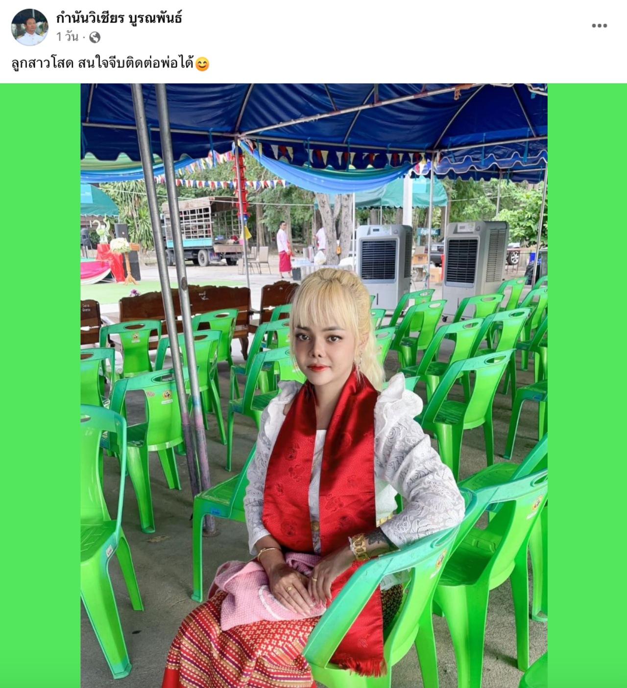ผู้ใช้เฟซบุ๊ก กำนันวิเชียร บูรณพันธ์ ซึ่งเป็นกำนันนักพัฒนา ตำบลบ้านเก่า อำเภอหนองฉาง จังหวัดอุทัยธานี ได้โพสต์ภาพลูกสาวคนเดียว พร้อมระบุข้อความว่า "ลูกสาวโสด สนใจจีบติดต่อพ่อได้" ซึ่งเป็นทำนองเหมือนจะรับสมัครลูกเขยนั่นเอง ในเฟซบุ๊กของตัวเอง