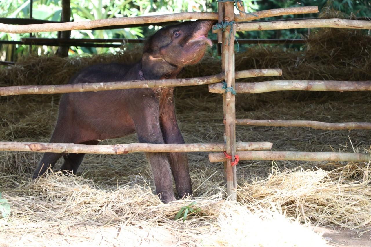 โดย นางสาวทักษิณา จารุวัฒนานนท์ นายสัตวแพทย์ชำนาญการ พร้อมด้วยเจ้าหน้าที่ส่วนอนุรักษ์สัตว์ป่า สำนักบริหารพื้นที่อนุรักษ์ที่ 10 (อุดรธานี) และสำนักบริหารพื้นที่อนุรักษ์ที่ 9 (อุบลราชธานี) เข้าสับเปลี่ยนรักษาตรวจสอบและบันทึกอาการของลูกช้าง ซึ่งผ่านมากว่า 9 วันแล้วที่ลูกช้างป่าอาศัยอยู่ภายในคอกชั่วคราวที่ทำขึ้นข้างโรงจอดรถ