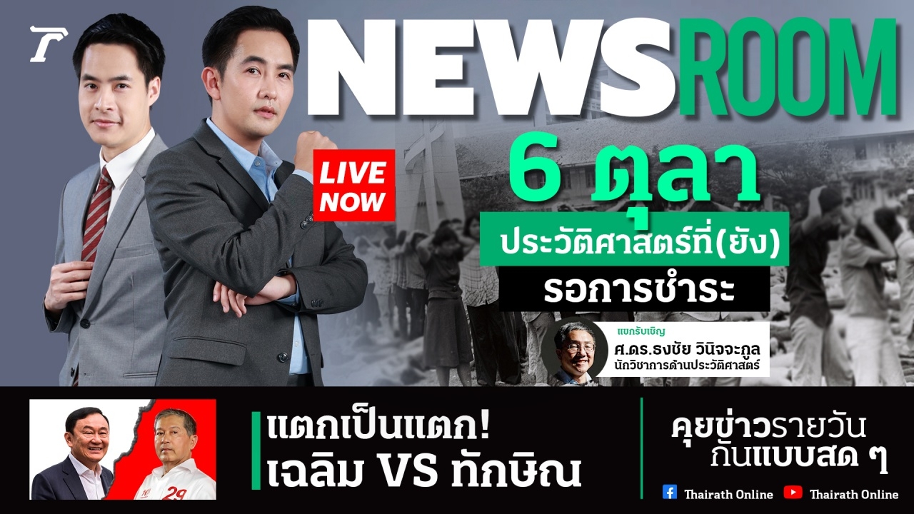 วันที่ 5 ต.ค. 2566 ใน "NewsRoom" รายการทอล์กคุยข่าวในกระแสประจำวัน รวมถึงฮอตแฮชแท็กที่เกิดขึ้นในโลกโซเชียล พร้อมสรุปสาระสำคัญเรื่องที่ต้องรู้ โดยในวันนี้ได้พูดคุยแบบเป็นกันเอง กับ 2 ประเด็นร้อนแรง แตกเป็นแตก "เฉลิม VS ทักษิณ" และครบรอบ 47 ปี "สังหารหมู่ 6 ตุลา" ประวัติศาสตร์ที่ (ยัง) รอการชำระ