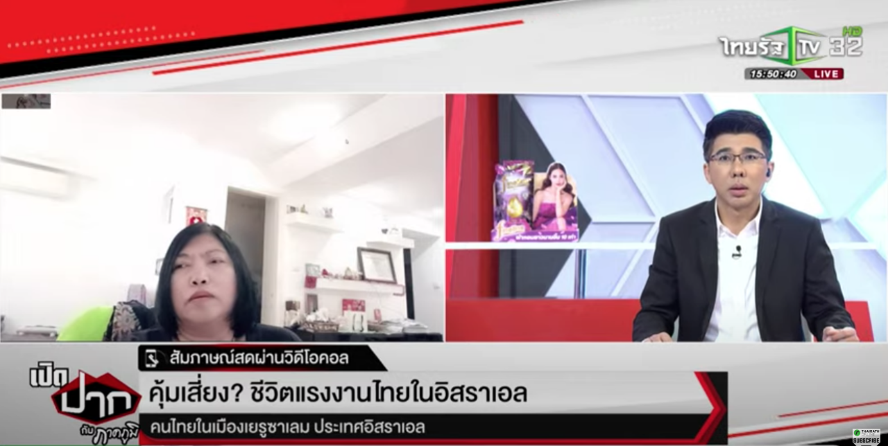 เมื่อเวลา 15.30 น. วันที่ 11 ตุลาคม 2566 ในรายการ "เปิดปากกับภาคภูมิ" ทางไทยรัฐทีวี ช่อง 32 ดำเนินรายการโดย นายภาคภูมิ พันธุ์สถิตย์ ได้พูดคุยประเด็น ชีวิตแรงงานไทยในอิสราเอล ความเสี่ยงต่างๆ ที่ต้องเผชิญ แลกกับค่าตอบแทนจำนวนมาก