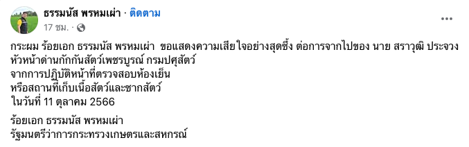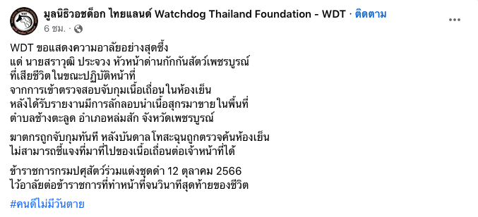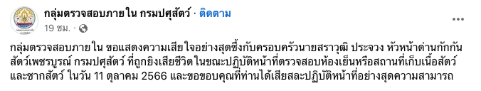 โซเชียลร่วมอาลัย แสดงความเสียใจกับการสูญเสีย "หัวหน้าด่านกักกันสัตว์เพชรบูรณ์" ที่ถูกคนร้ายยิงเสียชีวิต ขณะปฏิบัติหน้าที่