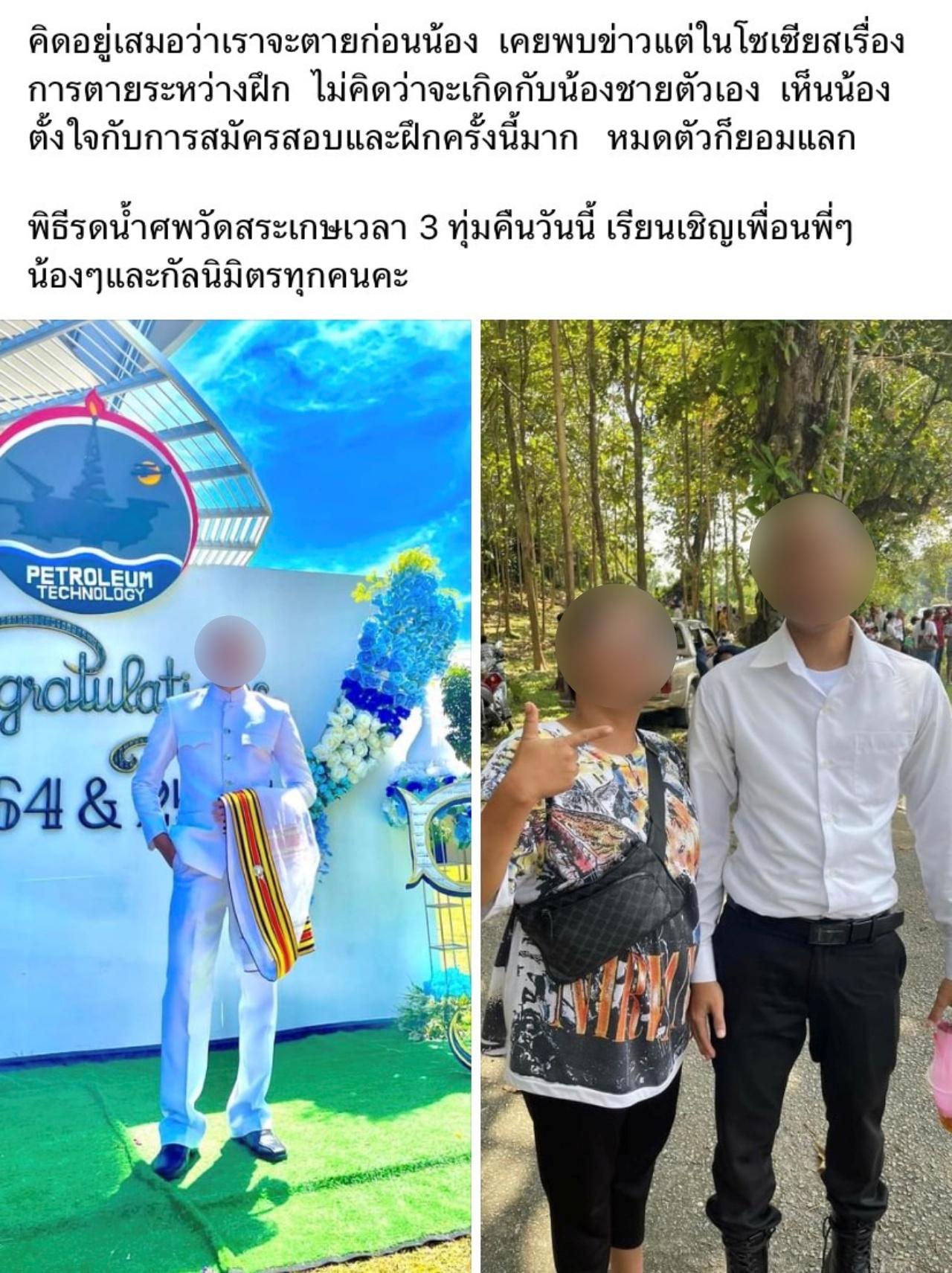 พี่สาวโพสต์เศร้าถึงน้องชาย ตั้งใจสมัครสอบและฝึกการเป็น "นักเรียนนายสิบตำรวจ" มาก แต่สุดท้ายก็ต้องมาเสียชีวิต ในระหว่างการฝึก