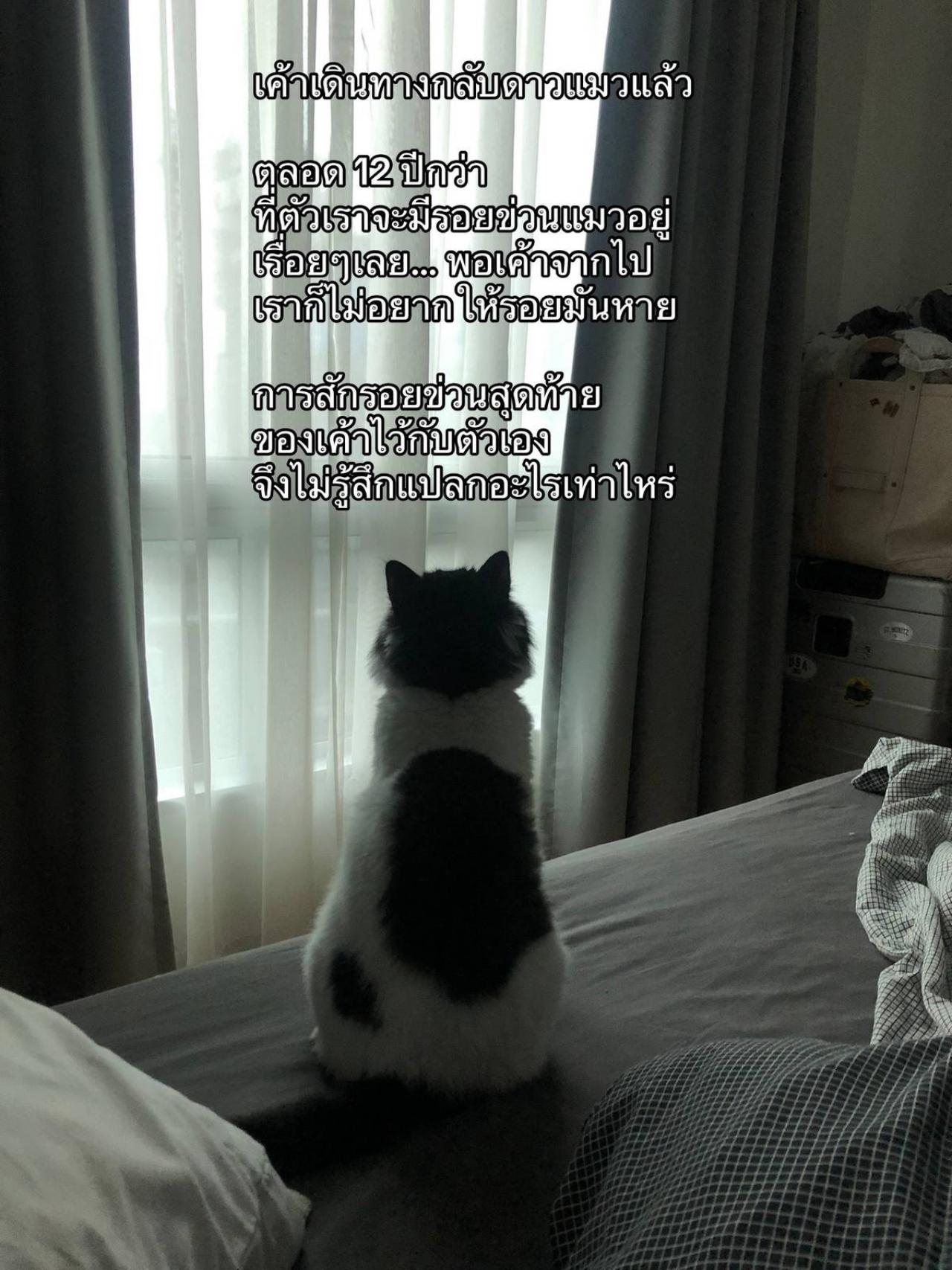 ทั้งนี้ ทางเจ้าของเรื่องยังได้เผยที่มาของรอยสักดังกล่าวว่า เป็นรอยข่วนของคุณมล แมวแสนรักที่จากไปแล้ว พร้อมทั้งเล่าว่า "ตลอด 12 ปีกว่า ที่ตัวเราจะมีรอยข่วนแมวอยู่เรื่อยๆเลย พอเขาจากไป เราก็ไม่อยากให้รอยมันหาย การสักรอยข่วนสุดท้ายของเขาไว้กับตัวเองจึงไม่รู้สึกแปลกอะไรเท่าไร และเราคิดว่า เราคงไม่เบื่อรอยสักนี้ เพราะได้ทดลองอยู่กับมันมาแล้วหลายปี คน move on ไม่ได้มันเป็นแบบนี้สินะ ฉันคิดแกมากเลย"