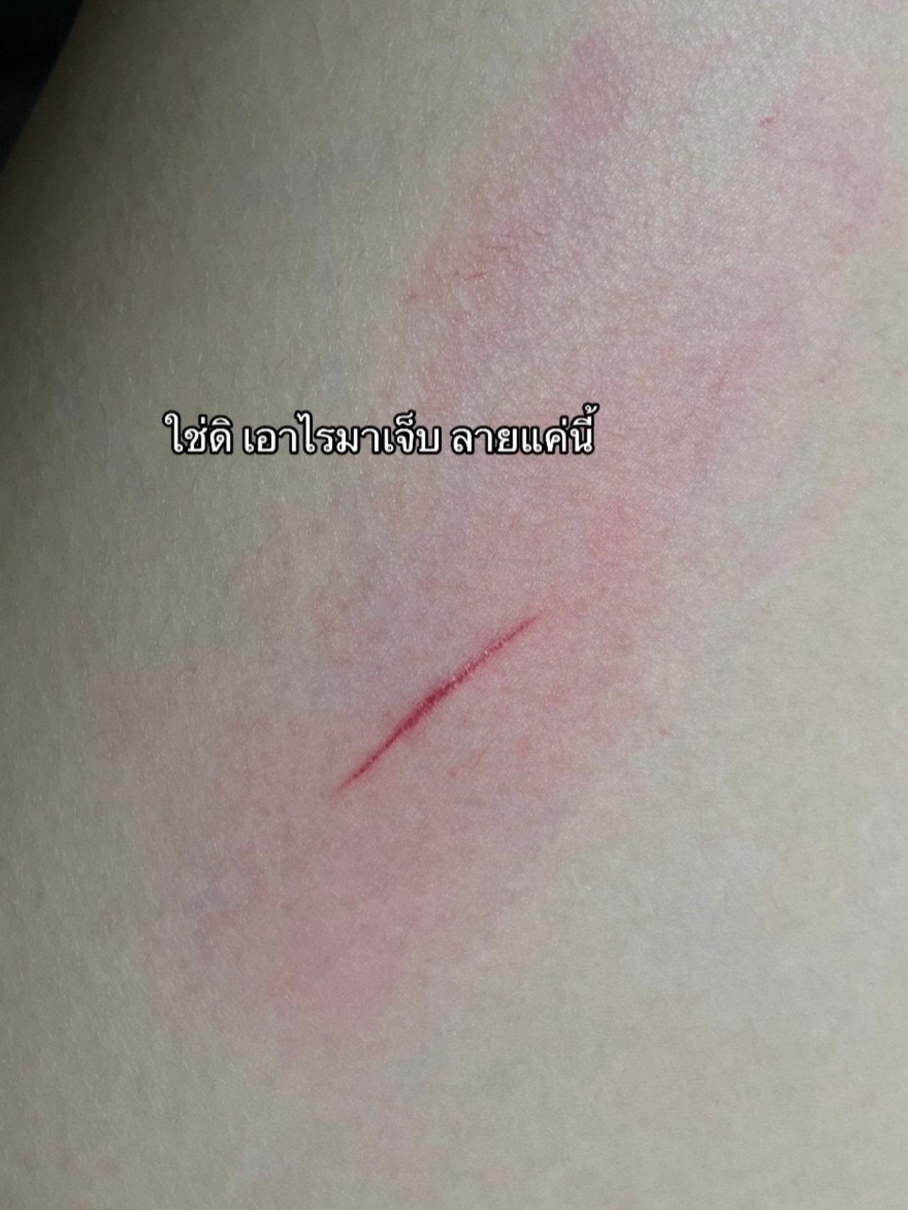 สำหรับรอยข่วนที่นำมาสักลายนั้น เป็นรอยข่วนมาตอนที่ดูแลคุณมลช่วงป่วย ต้องคอยป้อนอาหาร ป้อนยา หลังจากสักมาแล้ว รู้สึกชอบมาก เพราะเหมือนรอยข่วนจริงมากๆ ค่ะ.