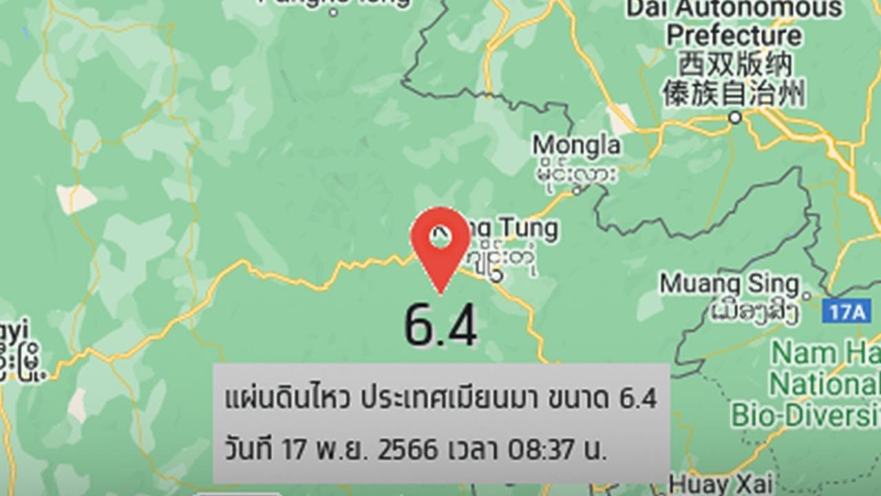 จากกรณีที่ กองเฝ้าระวังแผ่นดินไหว กรมอุตุนิยมวิทยา รายงานว่า ในวันนี้ (17 พ.ย. 66) เวลา 08.37 น. เกิดแผ่นดินไหวจุดศูนย์กลาง อยู่บริเวณประเทศเมียนมา ที่ละติจูด 21.189 องศาเหนือ ลองจิจูด 99.344 องศา ขนาด 6.4 ความลึก 9 กิโลเมตร ทางทิศตะวันตกเฉียงเหนือของ อ.แม่สาย จ.เชียงราย ประมาณ 100 กิโลเมตร