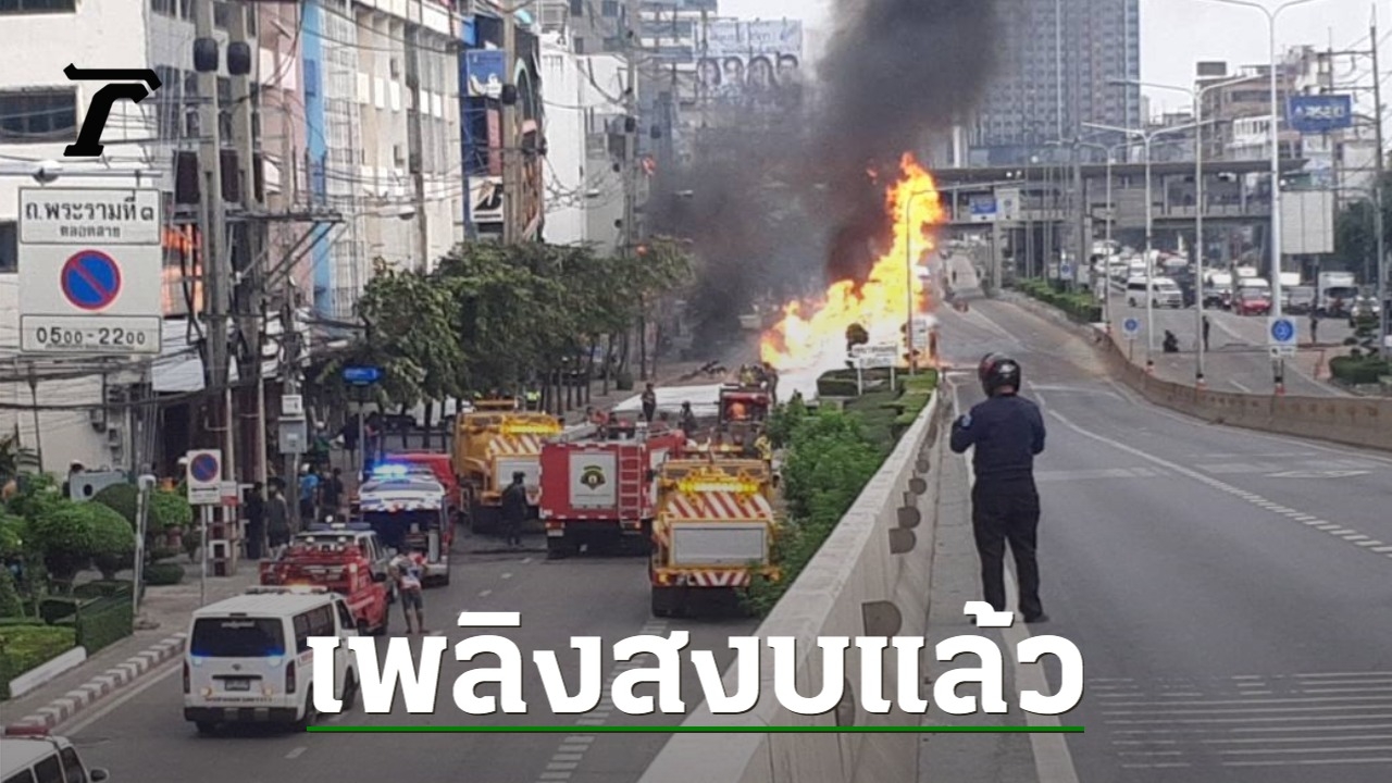 เกิดเหตุเพลิงไหม้รถบรรทุกแก๊ส บริเวณเชิงสะพานพระรามที่ 3 ล่าสุดเพลิงสงบ เจ้าหน้าที่กำลังใช้น้ำระบายความร้อน เบื้องต้นบาดเจ็บ 2 ราย