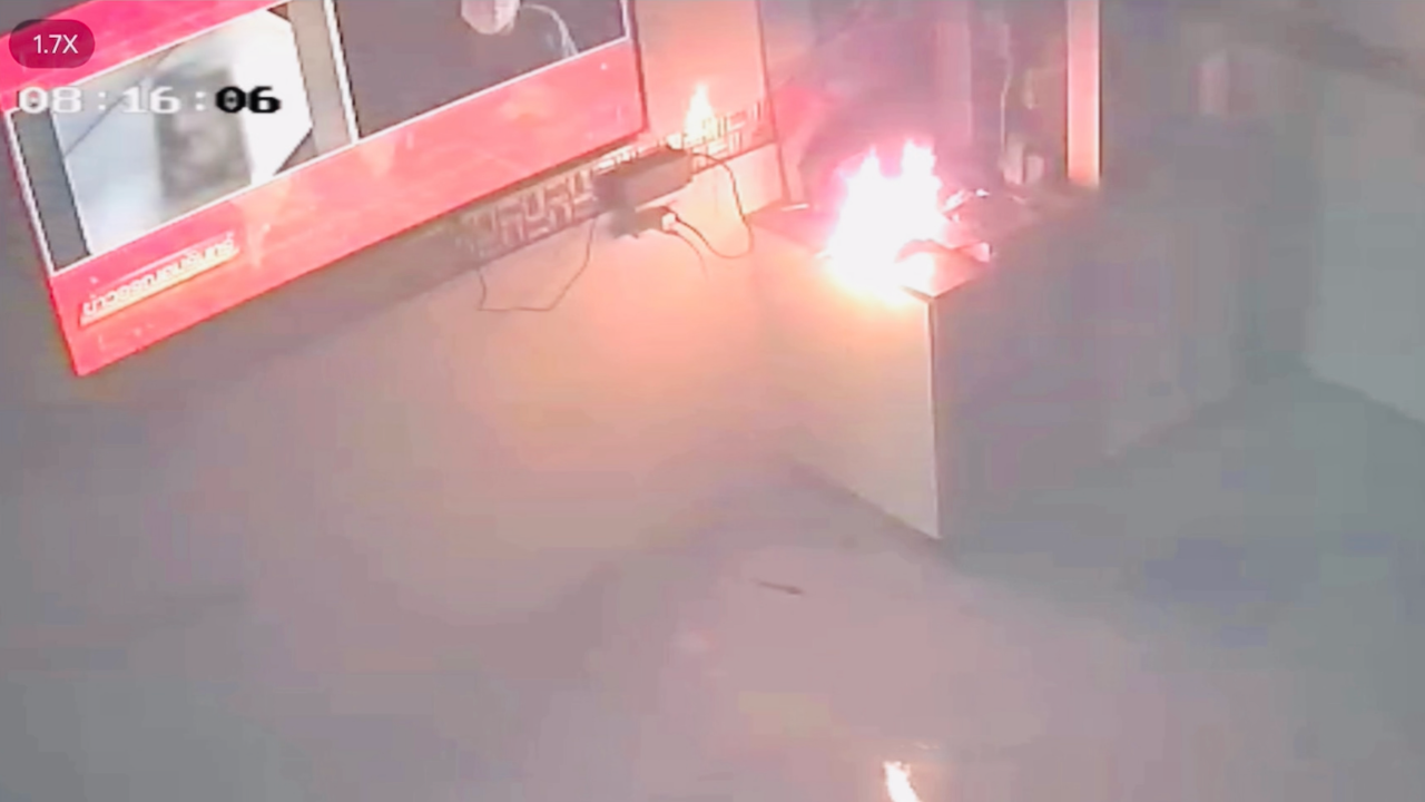 โดยในคลิปนั้น เป็นเหตุการณ์ที่พาวเวอร์แบงก์ซึ่งถูกเสียบชาร์จวางไว้บนโต๊ะหน้าทีวี อยู่ๆ เกิดควันโขมง และมีไฟลุกไหม้อย่างรวดเร็ว ซึ่งหลังไฟไหม้ พบว่าพาวเวอร์แบงก์ได้รับความเสียหาย รวมไปถึงกระเป๋า กุญแจรถ และของใช้อื่นๆ ที่วางอยู่ใกล้กันถูกไฟไหม้ได้รับความเสียหายเช่นเดียวกัน