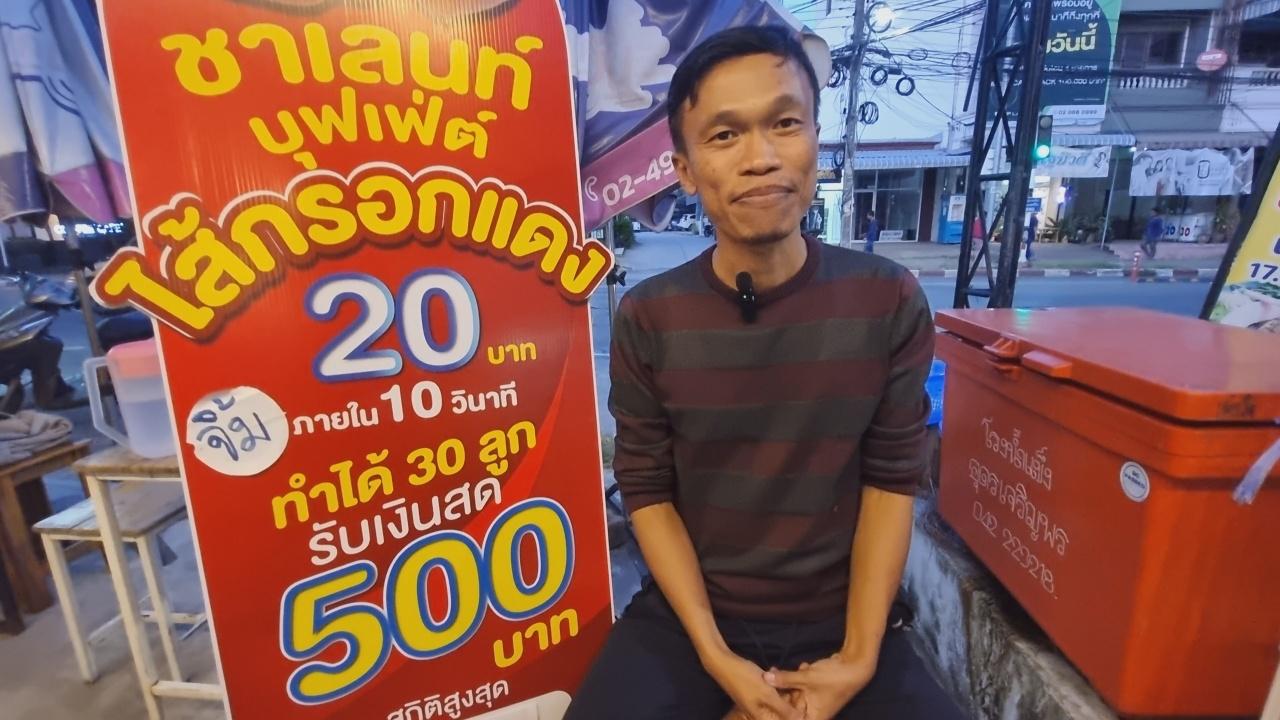 เมื่อวันที่ 29 พ.ย. 2566 ผู้สื่อข่าวเดินทางไปที่ร้านก๋วยเตี๋ยวไก่แม่นิยมบุฟเฟต์ พบกับ นายประจวบ โสภากุล หรือเล็ก อายุ 43 ปี หลังจากมีไอเดียขายบุฟเฟต์ลูกชิ้นทอดในราคา 50 บาท และยังจัดกิจกรรมชาเลนจ์จิ้มลูกชิ้นใส่ถ้วยภายใน 10 วินาที สร้างสีสันให้กับลูกค้าที่มาอุดหนุน มีการถ่ายภาพ ถ่ายคลิปวิดีโอไปลงในโลกโซเชียล จนเป็นกระแสให้คนมาชาเลนจ์ และมาอุดหนุดกันอย่างไม่ขาดสาย