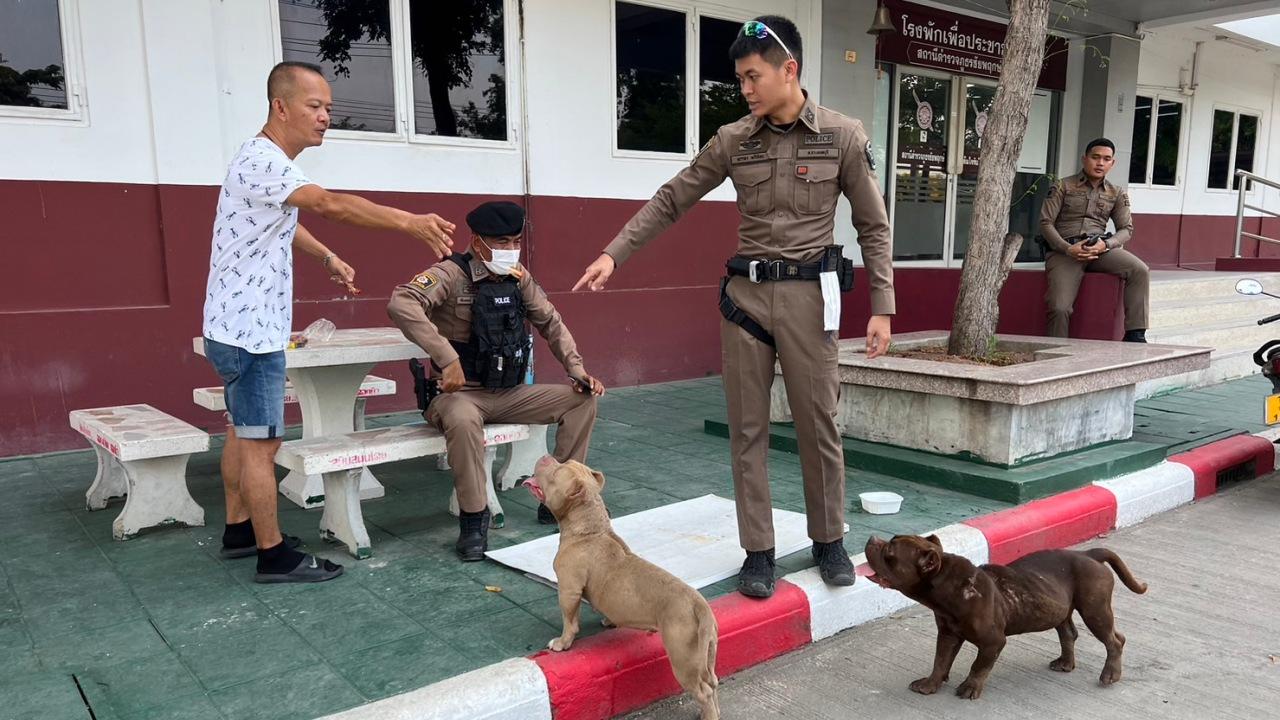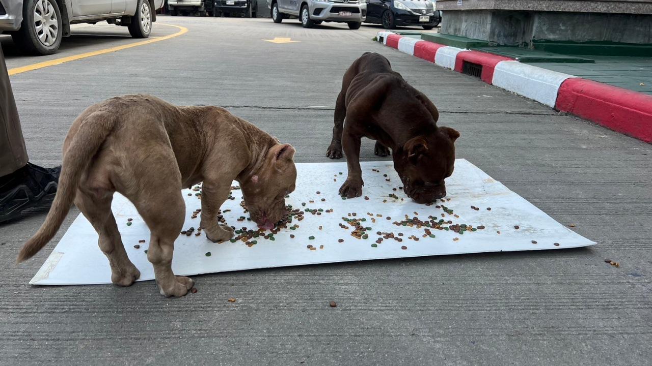 เมื่อวันที่ 10 ธ.ค. 2566 ร.ต.อ.สัมฤทธิ์ ลี้เกษร รอง สวป.สภ.ชัยพฤกษ์ จ.นนทบุรี ได้รับแจ้งจากชาวบ้านว่าพบลูกสุนัขพิตบูล จำนวน 2 ตัว เดินวนเวียนอยู่ที่หน้าบ้านหลังหนึ่งคล้ายถูกทิ้ง ห่างจาก สภ.ชัยพฤกษ์ ประมาณ 200 เมตร เกรงว่าสุนัขจะดุร้ายและกัดเจ้าของบ้าน จึงนำกำลังไปตรวจสอบ