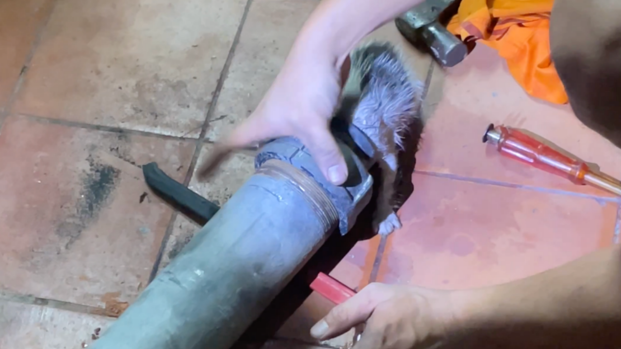 ซึ่งในคลิปนั้น ไม่ใช่แค่เป็นการช่วยแมวที่ติดท่อธรรมดา เพราะหัวของน้องแมวติดอยู่ที่ท่อ ทำให้ต้องรื้อท่อออกมา เพื่อช่วยชีวิตน้อง