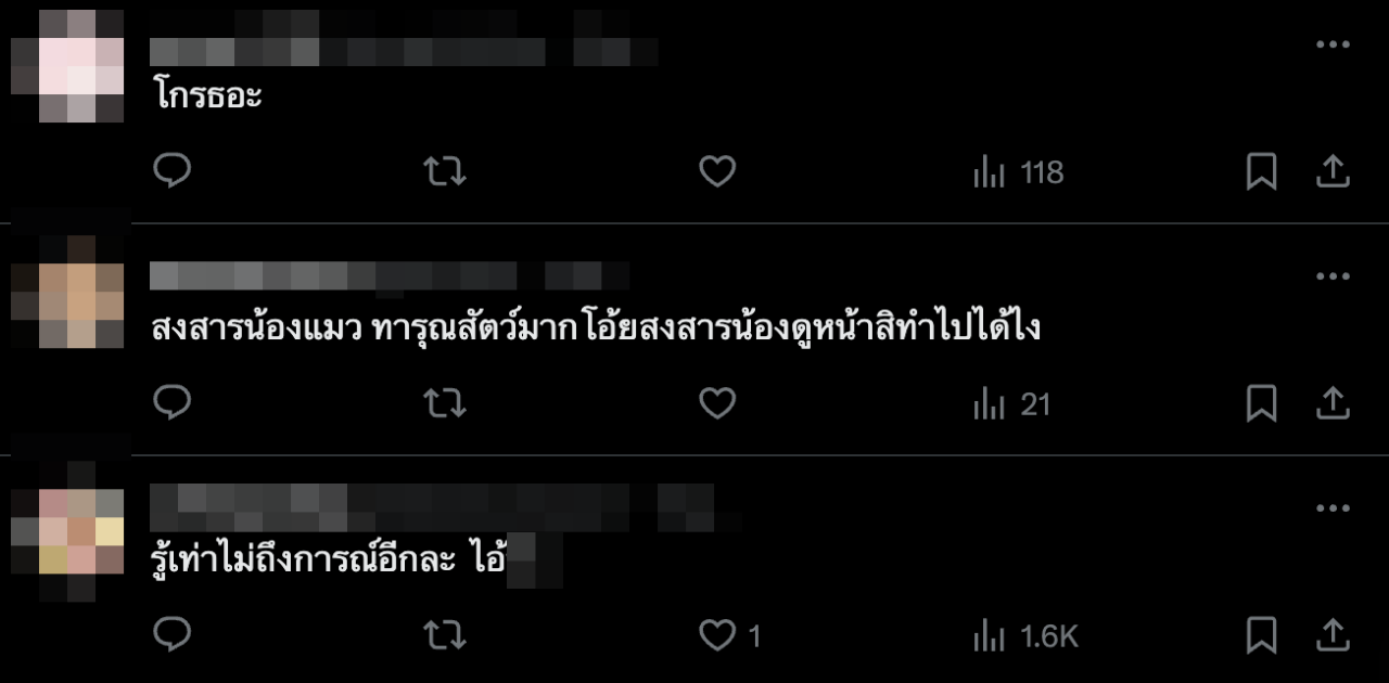 ซึ่งหลังจากที่คลิปดังกล่าวถูกแชร์ออกไป ก็มีคนเข้ามาแสดงความคิดเห็นตำหนิการกระทำนี้เป็นจำนวนมาก พร้อมทั้งตั้งคำถามว่า ทำแบบนี้เข้าข่ายทารุณกรรมสัตว์หรือไม่ เพราะการกระทำแบบนี้อาจทำให้แมวตายได้ พร้อมกับเรียกร้องหน่วยงานที่เกี่ยวข้องไปตรวจสอบ