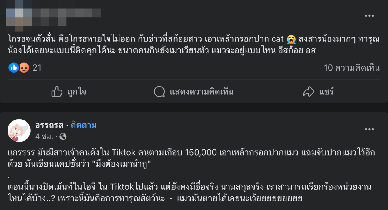 ทาสแมว คนรักสัตว์เดือด สาวอัดคลิปลงโซเชียล เทเหล้ากรอกปากแมว บอกต้องเมาเหมือนกัน ล่าสุดปิดโซเชียลแล้ว