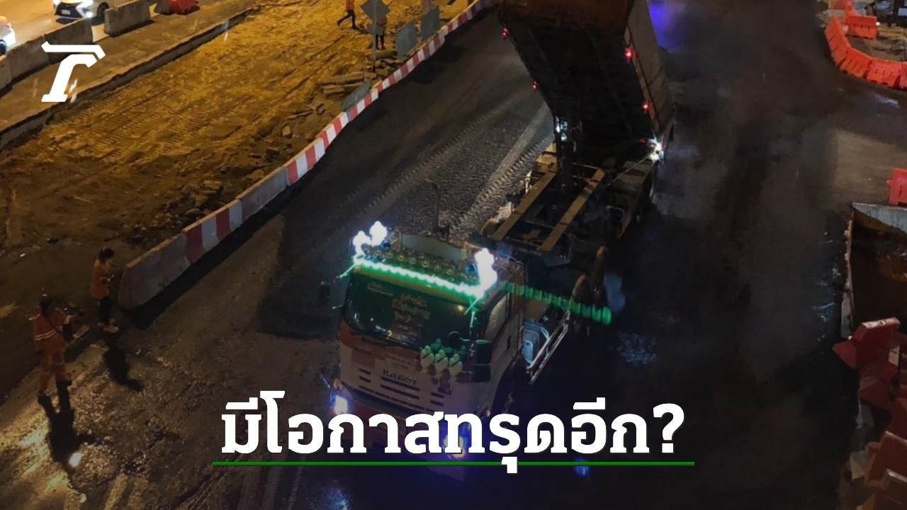 ตอบ : เสร็จโดยประมาณ ตี 1-2 รอยางมะตอยแห้ง เสร็จเรียบร้อยแล้วเก็บกวาด ถึงจะเปิดให้ใช้ได้ เช้าน่าจะทัน