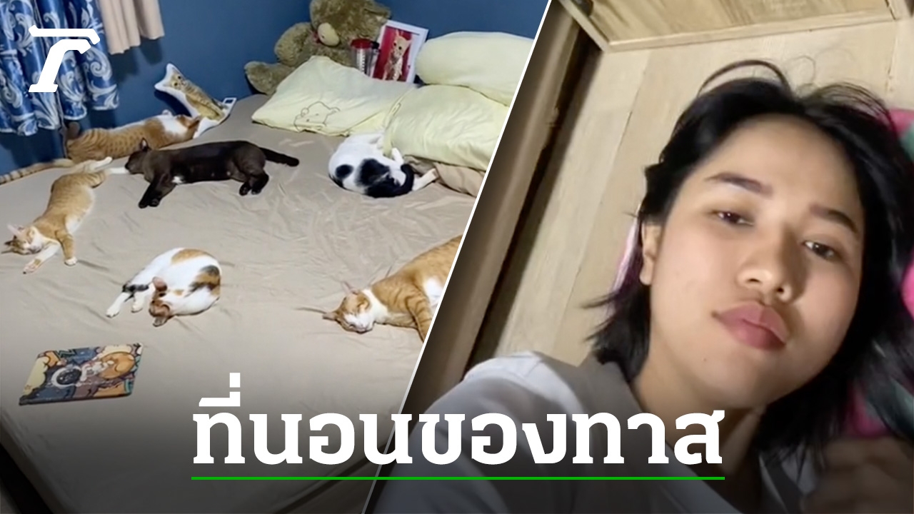 พื้นเท่านั้นคือคำตอบ สาวกลับบ้านหลังเสร็จงาน เจอเหล่า "แมว" ลูกรักยึดเตียงนอน จนสุดท้ายต้องย้ายตัวเองไปนอนพื้น ทำโซเชียลแห่แซว "ทาสเท่านั้นที่จะเข้าใจ"