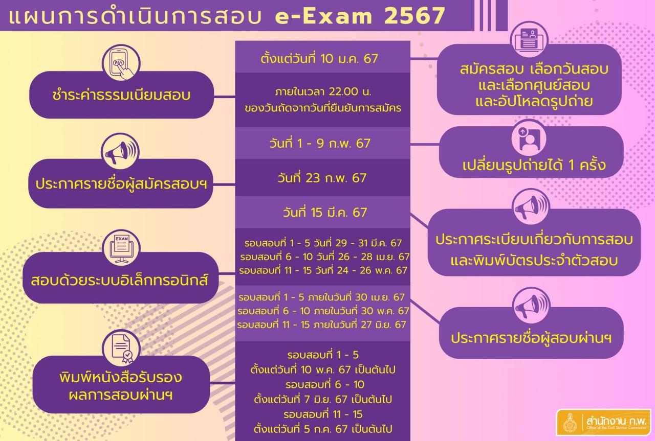 วันที่ 10 มกราคม 2567 มีรายงานว่า วันนี้เป็นวันแรกที่ทางสำนักงาน ก.พ. หรือ สำนักงานคณะกรรมการข้าราชการพลเรือน เปิดรับสมัครสอบเพื่อวัดความรู้ความสามารถทั่วไป (ภาค ก) ด้วยระบบอิเล็กทรอนิกส์ ประจำปี 2567 (e-Exam)