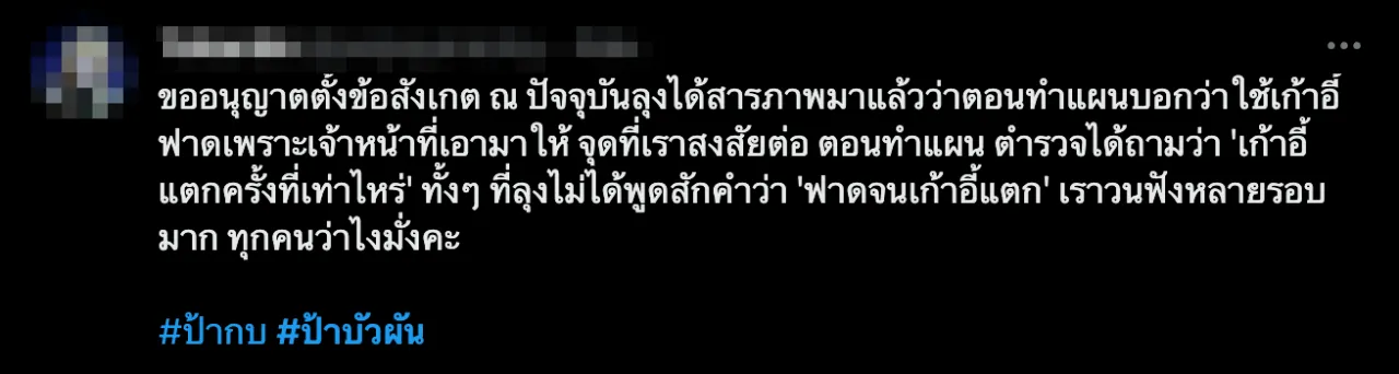 ขณะที่ลุงเปี๊ยกเอง หลังจากที่ถูกจับ ก็มีคนตั้งข้อสงสัยเช่นกันว่า ทำไมลุงรู้พฤติการณ์ในการทำร้ายป้าบัวผันทุกอย่าง และมีการลงไปทำแผนฯ ซึ่งต่อมาทางลุงเปี๊ยกอ้างว่า ได้รับความกดดันจากสังคมว่าเป็นคนที่ฆ่าเมีย ทำให้เครียด จึงรับสารภาพไป พร้อมยืนยันว่าไม่มีใครบังคับให้สารภาพ
