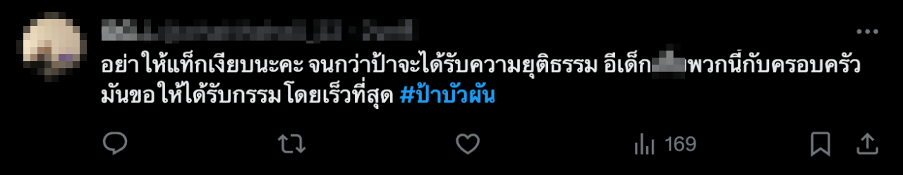 แฮชแท็ก #ป้าบัวผัน ยังสนั่นโซเชียล คนตั้งข้อสงสัยปมวงจรปิด จนนำไปสู่การจับกุม ลุงเปี๊ยก ชาวเน็ตขุดวีรกรรมเก่าแก๊งโจ๋ ขณะที่หลายคนที่เคยเจอป้าบัวผัน แชร์คลิปความน่ารักของป้า เพื่อไว้อาลัย