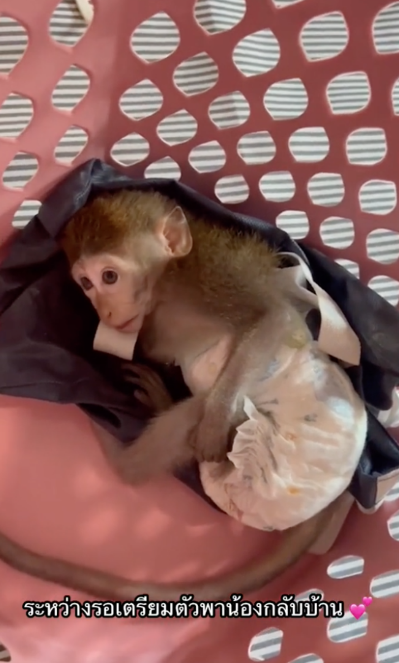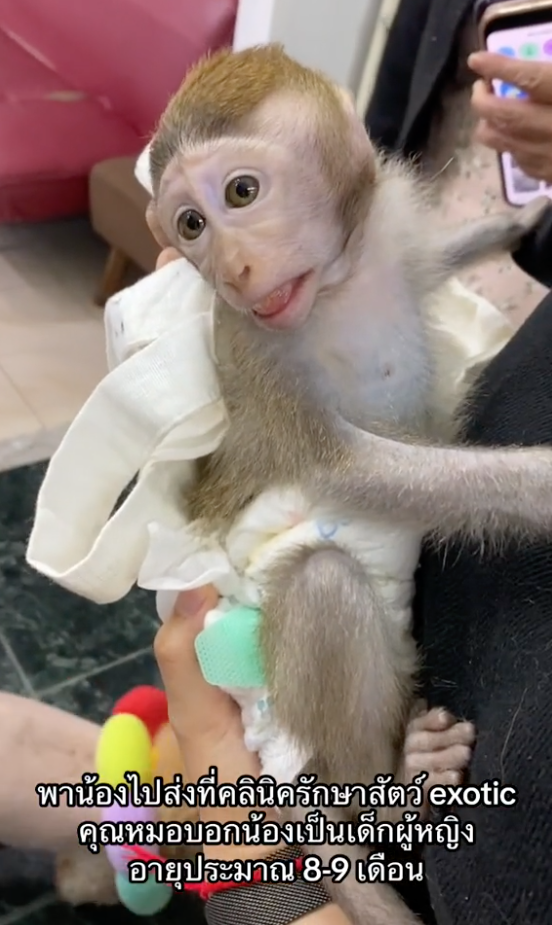 ก่อนจะนำส่งให้ดูแลต่อ ซึ่งตอนนี้ก็มีลิงเด็ก ที่ป่วยอยู่ในความดูแลด้วย คุณหมอจึงให้อยู่ด้วยกัน และอนุบาลเพื่อความคุ้นชิน ก่อนจะนำปล่อยไปพร้อมกัน คุณหมอแจ้งอีกว่า จะหาแม่ลิงให้มาเป็นแม่นมแทน เพราะอายุรุ่นๆ นี้ ยังปล่อยกลับคืนได้ง่าย และก่อนหน้านี้ก็เคยมีเคยปล่อยลิงกลับไปแล้ว ส่วนเรื่องที่เกิดขึ้น อยู่ลพบุรีมา 30 ปี เป็นครั้งแรกที่ลิงติดไปด้วย ซึ่งก็อาจจะเป็นข้อระวังว่า รอบหน้าอาจจะดูมากกว่านี้.
