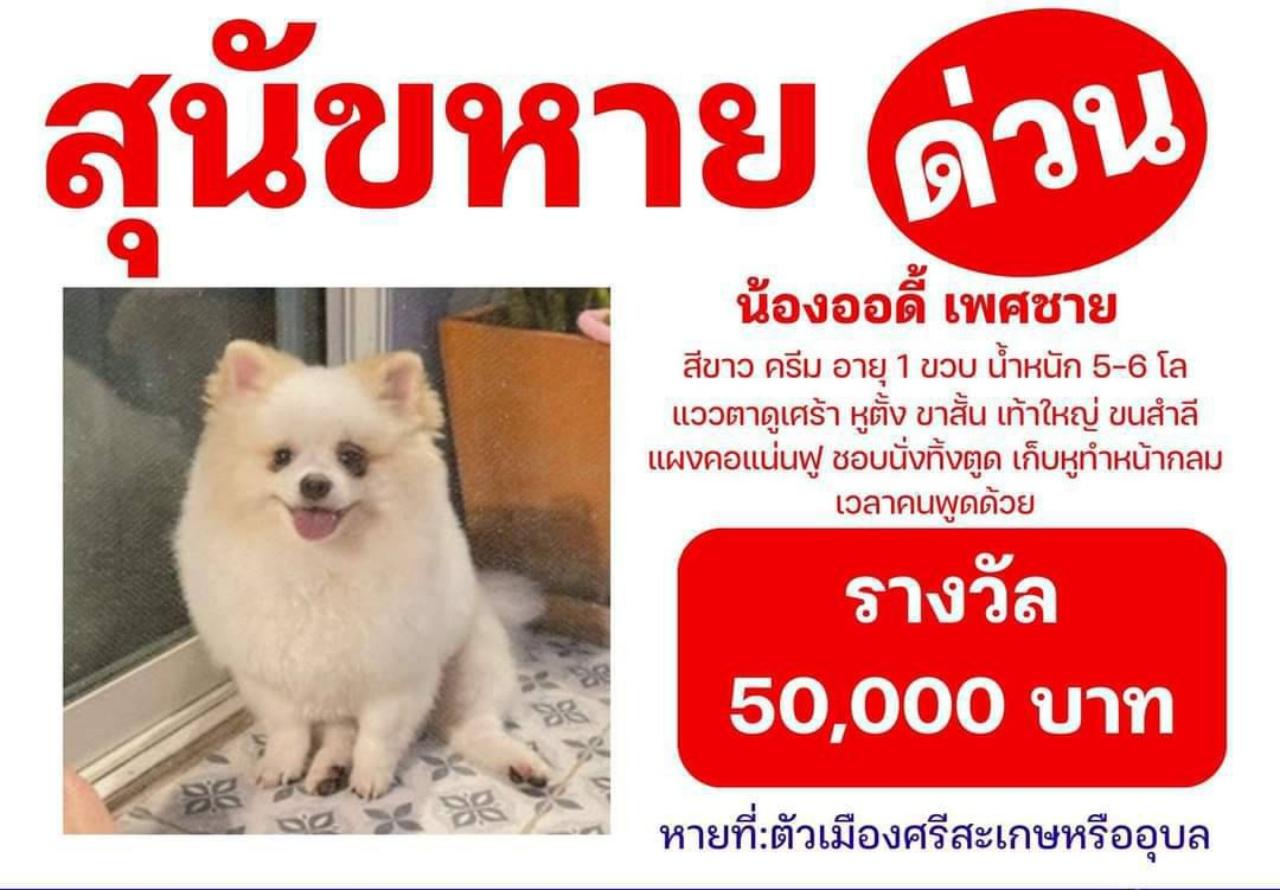 ส่วนตัวตนคิดว่าน้องออดี้ ไม่น่าจะหายไปเอง เพราะน้องหมาออดี้ เป็นหมาที่เชื่องมาก จากนั้นจึงได้โพสต์ตามหาน้องหมา โดยตั้งรางวัลให้สำหรับผู้ที่พบเห็น และแจ้งเบาะแสหรือจับได้แล้วนำส่งคืน เป็นเงินจำนวน 5,000 บาท แต่แล้วก็ยังไม่มีวี่แวว ตนจึงเพิ่มรางวัลขึ้นเป็น 50,000 บาท พร้อมปิดประกาศทั่วเมืองศรีสะเกษ และทางโซเชียล