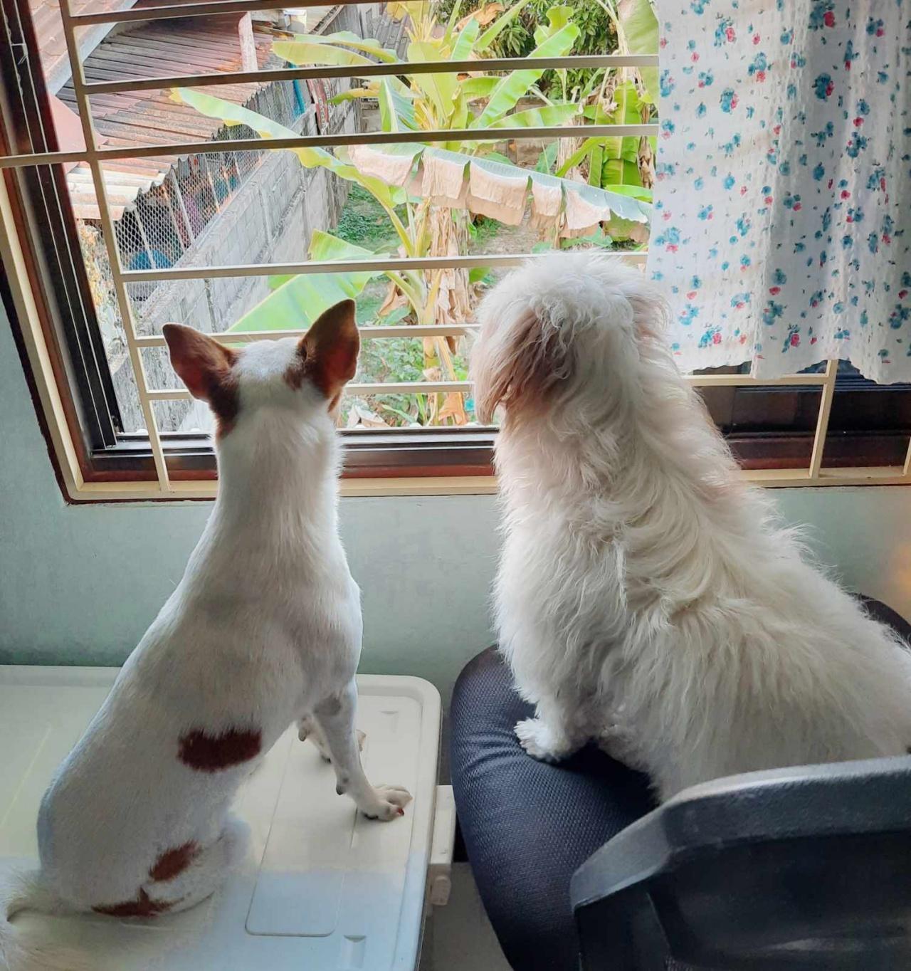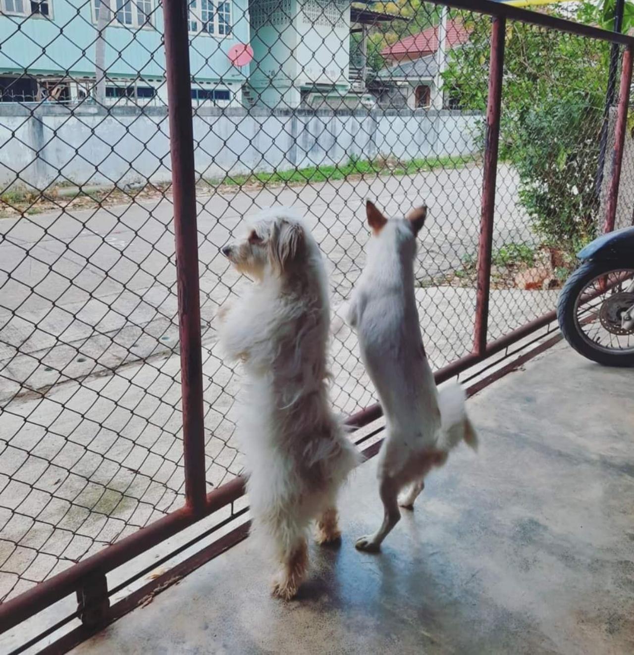 นอกจากนี้ทาง "เจ้าของ" ยังเผยภาพล่าสุดของสุนัขทั้ง 2 บอกว่า "นี่ล่าสุดเมื่อเช้าค่ะ ไม่ต้องเขย่งกันแล้ว".
