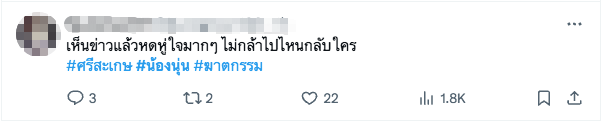 โซเชียลสะเทือนใจดันแฮชแท็ก #น้องนุ่น หลังสามีรับสารภาพ เป็นคนลงมือก่อเหตุเอง ขณะที่หลายคนถามเหตุจูงใจในการฆ่า พร้อมเรียกร้องถึงเวลาเพิ่มโทษคนผิดหรือยัง