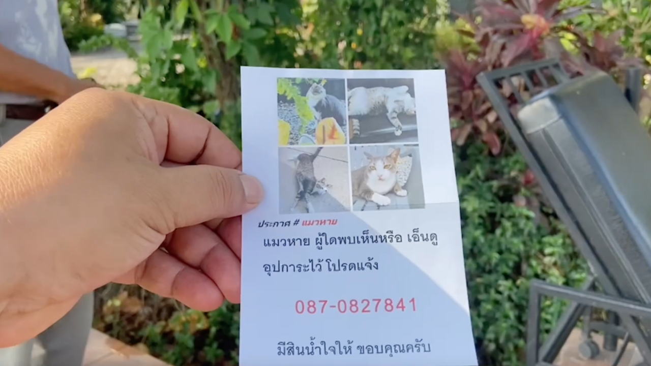 ที่ผ่านมาพยายามตามหา โดยการทำแผ่นพับป้ายประกาศติดตามสถานที่ต่างๆ โดยตั้งรางวัลแรกเริ่มเอาไว้ที่ 10,000 บาท แต่ก็ยังไม่มีเบาะแส กระทั่งเมื่อวานวันที่ 20 กุมภาพันธ์ 2567 จึงตัดสินใจได้เพิ่มรางวัลในการนำตัวแมวกลับมาส่งคืน 100,000 บาท เงินพอหาใหม่ได้ แต่แมวมีเพียงตัวเดียวในโลก หาที่ไหนไม่ได้ ไม่มีวันไหนที่ไม่มีความทุกข์ คิดถึงอยู่ทุกวัน ตั้งแต่แมวหายไป ทุกวันนี้ก็ยังตามหาอยู่ โดยยังมีความหวังว่าจะได้แมวกลับมา