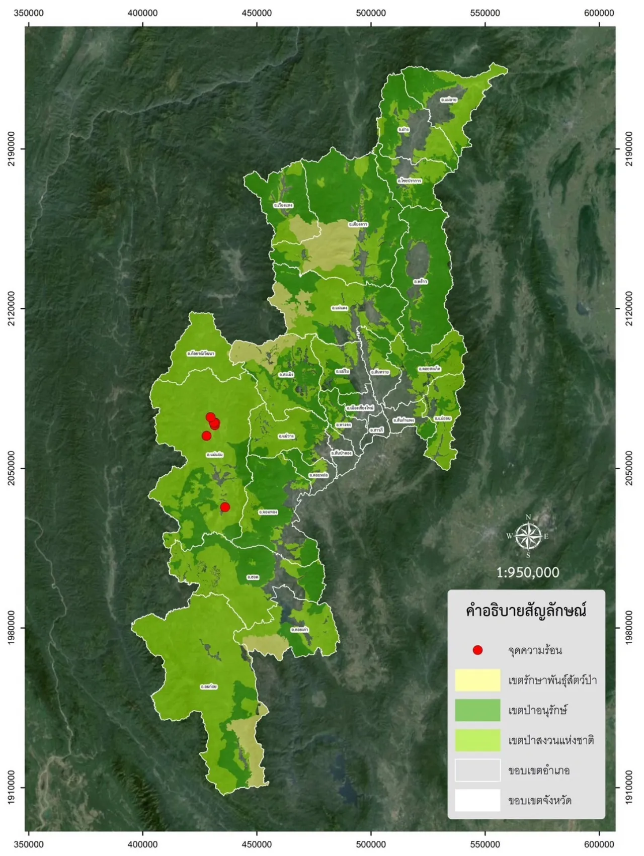 ขณะที่ ศูนย์อำนวยป้องกันและแก้ไขปัญหาหมอกควัน ไฟป่า และฝุ่นละอองขนาดเล็ก PM 2.5 จังหวัดเชียงใหม่ ได้รายงานจุดความร้อน (Hotspot) ประจำวันรอบเช้า จังหวัดเชียงใหม่พบจุดความร้อน จำนวน 6 จุดพบในพื้นที่อำเภอแม่แจ่ม 6 จุด