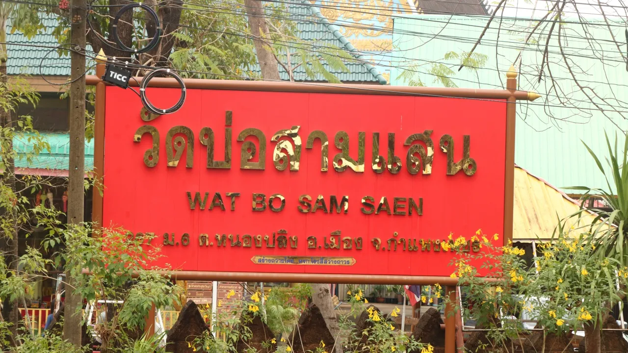 วันที่ 20 มี.ค. 2567 ผู้สื่อข่าวเดินทางไปยังวัดบ่อสามแสน เลขที่ 267 หมู่ 6 ต.หนองปลิง อ.เมือง จ.กำแพงเพชร หลังพบว่าโลกโซเชียล โดยเฉพาะในประเทศจีน และประเทศเวียดนาม รวมไปถึงประเทศไทยต่างสืบค้นว่าหาที่มาของ พระนอน หรือ พระพุทธรูปปางไสยาสน์ขนาดใหญ่ ที่มีลักษณะคล้ายใบหน้าคนกลั้นขำ ซึ่งที่ประดิษฐานอยู่ภายในศาลาวัดบ่อสามแสน