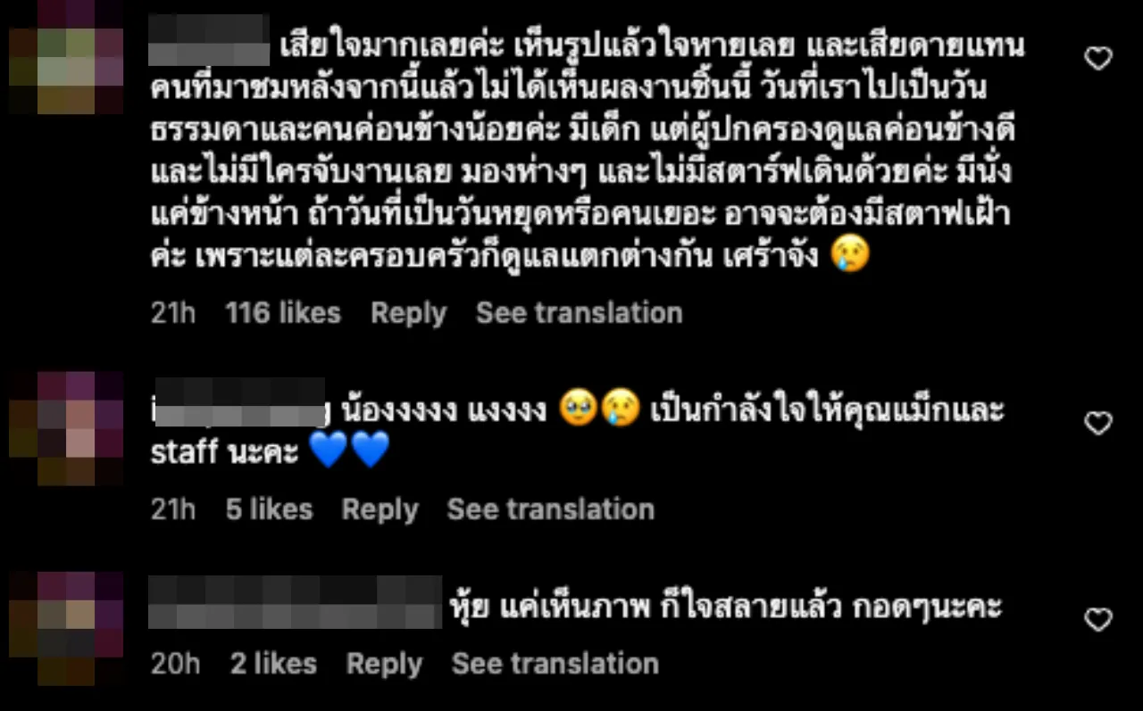 ซึ่งหลังจากที่โพสต์ดังกล่าวถูกแชร์ออกไป ก็มีคนเข้ามาให้กำลังใจเป็นจำนวนมาก ไม่ว่าจะเป็นคนในวงการบันเทิง หรือคนที่ชื่นชอบอาร์ตทอย ที่ชื่อว่า "Chalotte" ด้วย ขณะที่บางคนเสนอแนะว่า ควรจะจำกัดอายุผู้เข้าชมงานศิลปะดีหรือไม่ หรือท้ายที่สุดถ้าเลี่ยงไม่ได้ ก็ควรจะทำที่กั้น