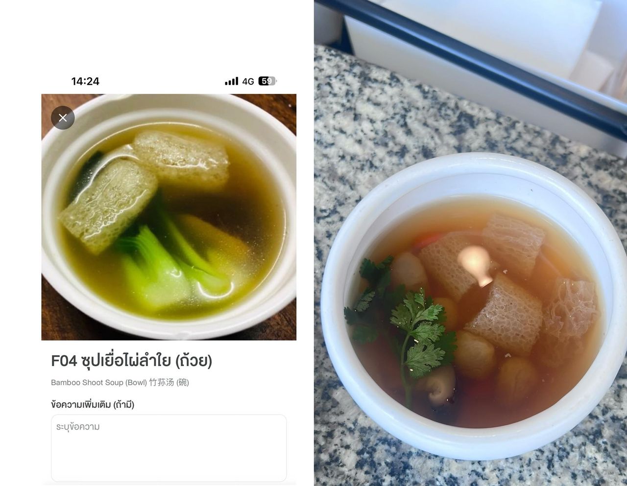 ตอนที่กินเราโกรธมาก และรู้สึกเสียหน้ามากๆ เพราะเราเป็นคนเลือกร้าน แต่ก็ไม่ได้ทักท้วงพนักงาน เพราะกลัวบรรยากาศในโต๊ะจะยิ่งไม่ดี