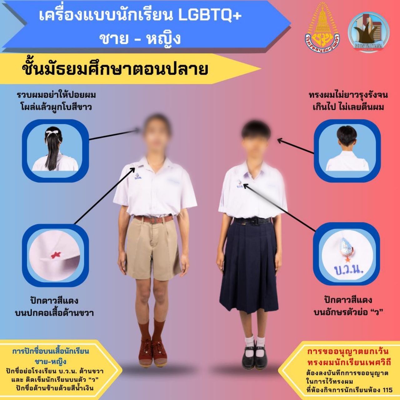 แต่ที่เรียกเสียงฮือฮาที่สุดคือรูปเครื่องแบบการแต่งกายของนักเรียนที่เป็น LGBTQ+ ที่ให้ผู้ชายไว้ผมยาวได้แต่ต้องมัดผมรวบไปข้างหลังพร้อมผูกโบสีขาว ส่วนผู้หญิงนั้นไว้ผมสั้นตัดผมรองทรงได้แต่ผมด้านหลังต้องไม่เกินตีนผม ซึ่งหลังจากโพสต์ดังกล่าวได้ถูกเผยแพร่ออกไปนั้นก็ทำให้คนมากดถูกใจนับพันคน อีกทั้งยังมีการแชร์โพสต์ออกไปจำนวนมาก
