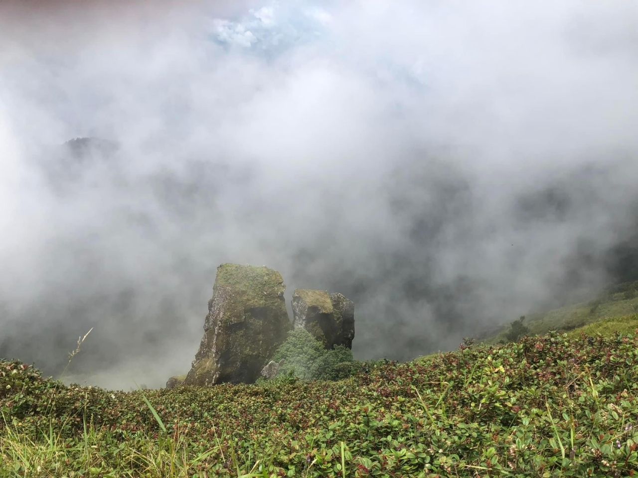 หลังจากผ่านดงทึบของป่าดิบเขา จึงเข้าสู่ช่วงของทุ่งหญ้าขนาดใหญ่ที่คอยเปลี่ยนสีจากสีเขียวในช่วงฤดูฝนสลับกับสีน้ำตาลอ่อนอย่างพรั่งพร้อมในช่วงฤดูแล้ง เห็นไอหมอกเมฆไหลมาอยู่เบื้องหน้า ซึ่งคาดไม่ถึงเลยว่าจะอยู่หลังม่านอันหนาทึบ หากสังเกตดีๆ ตามทางเดินจะพบมูลหรือรอยขุดคุ้ยหาอาหารของสัตว์ป่า