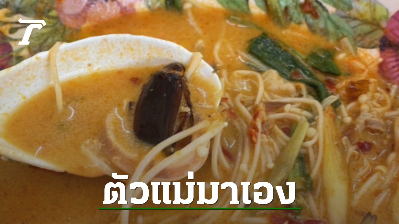 อันนี้รับไม่ได้ ลูกค้าช็อกหนัก กำลังซดน้ำต้มยำแล้วตักเจอ "แมลงสาบ" ตัวใหญ่ เรียกเจ้าของร้านมาดู ได้แต่ยืนอึ้งไม่ขอโทษ ขณะที่โซเชียลแห่วิจารณ์ยับ