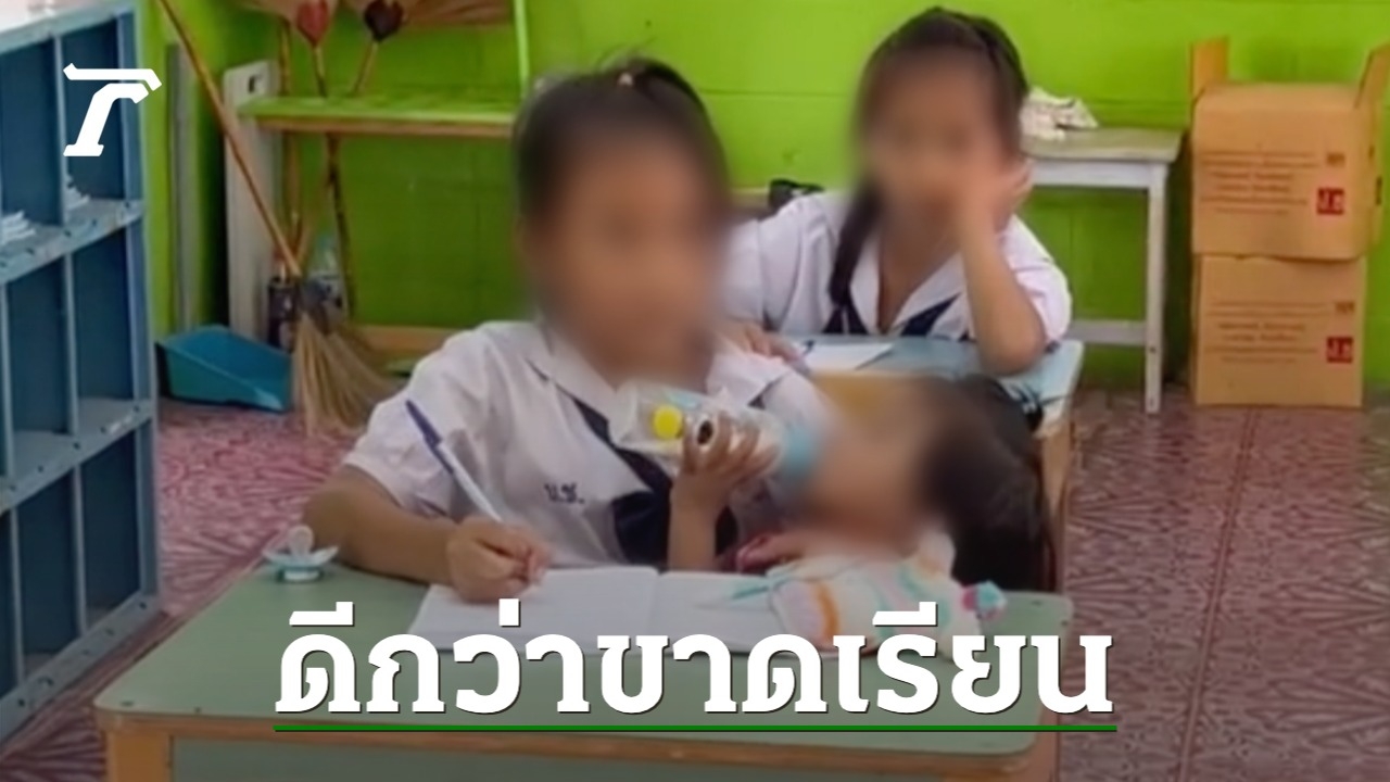 ด.ญ.ณัฐชายา อายุ 11 ขวบ นักเรียนชั้น ป.5 ที่เอาน้องมาเลี้ยงที่โรงเรียน กล่าวว่า ที่หนูขาดเรียนบ่อยๆ เพราะหนูเลี้ยงน้อง ก็เลยพาน้องมาโรงเรียนด้วยก็รู้สึกสนุกดี.