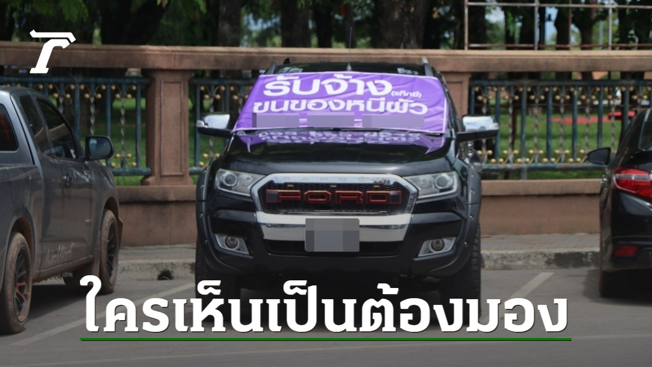 วันที่ 6 กรกฎาคม 2567 ผู้สื่อข่าวขับรถผ่านไปบนถนนเทศบาล 1 ต.ในเมือง อ.เมือง จ.กำแพงเพชร บริเวณหน้าตลาดสดริมแม่น้ำปิง พบรถปิกอัพ 4 ประตู สีดำจอดอยู่ มีป้ายสีม่วง ตัวหนังสือสีขาว ระบุข้อความสะดุดตาว่า "รับจ้างขนของหนีผัว" พร้อมทิ้งเบอร์โทรศัพท์ เอาไว้ให้ติดต่ออีกด้วย