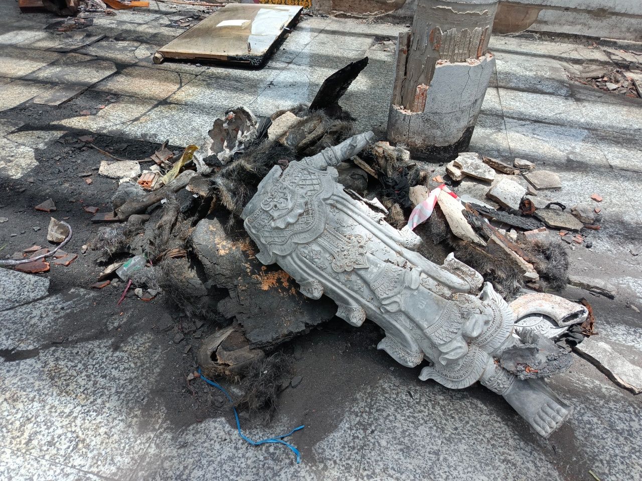 วันที่ 13 ก.ค. 67 จากกรณีไฟไหม้วิหารหลวงลายคำ ภายในวัดแสงแก้วโพธิญาณ ม.11 ต.เจดีย์หลวง อ.แม่สรวย จ.เชียงราย เมื่อช่วงรุ่งเช้าของวันที่ 22 มิ.ย.ที่ผ่านมา ส่งผลให้หุ่นขี้ผึ้งบูรพาจารย์ งานจิตรกรรมปิดทอง พระพุทธรูปสำคัญภายในวิหารได้รับความเสียหาย ไฟที่ลุกไหม้ยังส่งผลกระทบต่อหลังคาและพื้นผิวด้านนอกในวิหาร