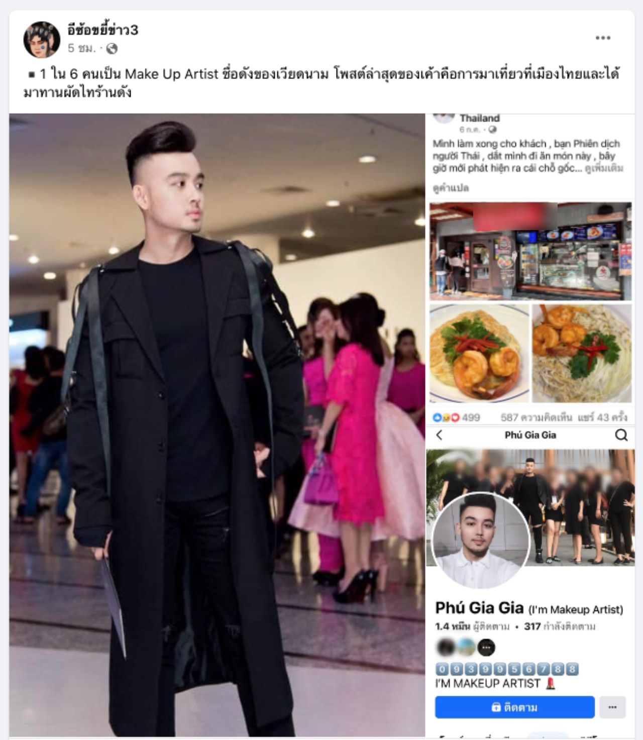 ต่อมา แฟนเพจ อีซ้อขยี้ข่าว3 ได้มีการเปิดเผยเฟซบุ๊กของช่างแต่งหน้าชื่อดัง 1 ในผู้เสียชีวิต พบว่าเมื่อวันที่ 6 กรกฎาคมที่ผ่านมา เจ้าตัวได้โพสต์ถึงการมาท่องเที่ยวที่กรุงเทพฯ ประเทศไทย โดยได้ไปทานอาหารที่ร้านผัดไทยชื่อดัง มีการชื่นชมอาหาร รวมทั้งเผยภาพ 2 เมนูซิกเนเจอร์ของทางร้าน