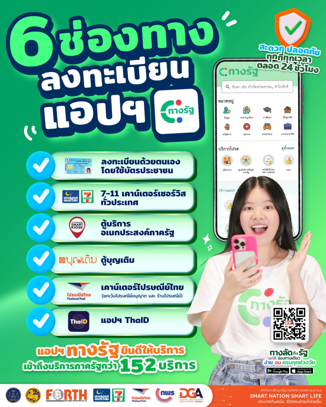 หลังจากดาวน์โหลดแอปฯ ทางรัฐ สามารถเลือกวิธีสมัครสมาชิกและลงทะเบียนยืนยันตัวตนได้ 6 ช่องทาง ดังนี้