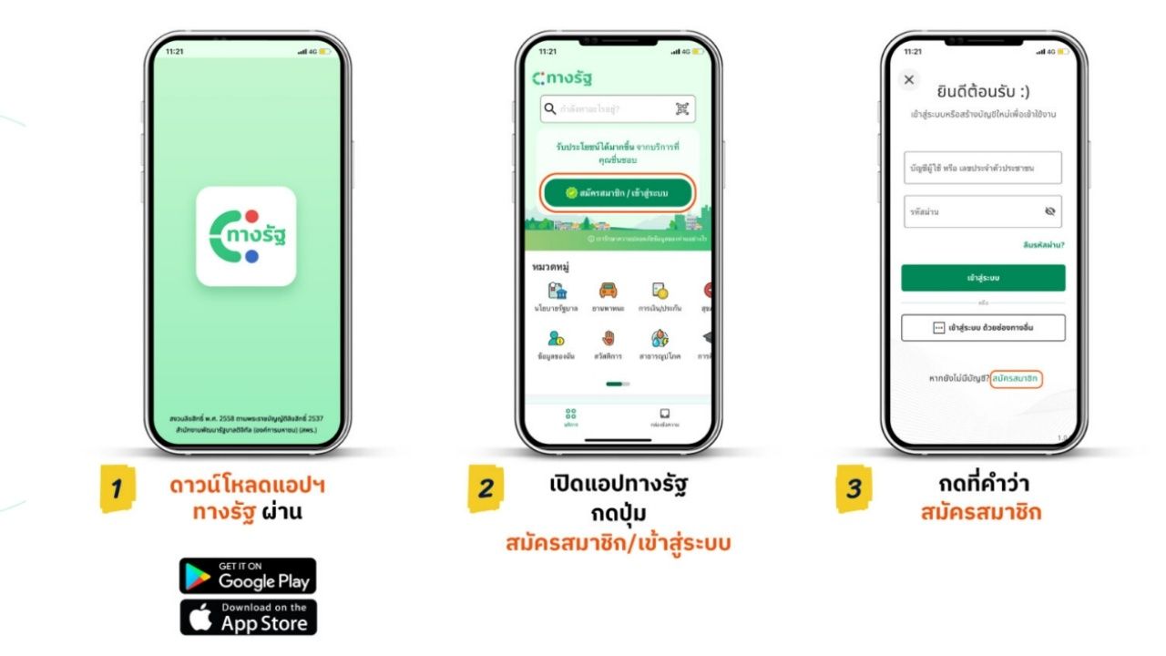 ขั้นตอนสมัครใช้งานแอปพลิเคชัน "ทางรัฐ"