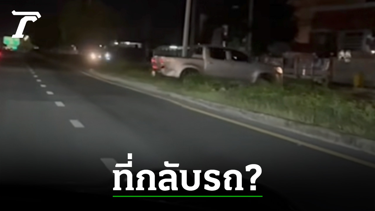 กระบะขับข้ามเกาะกลางถนน มอเตอร์ไซค์มาทางตรงชนอย่างจัง จนรถล้ม คนขี่เจ็บ ส่วนกระบะไม่จอดลงมาดูสักนิด
