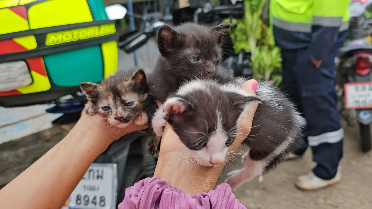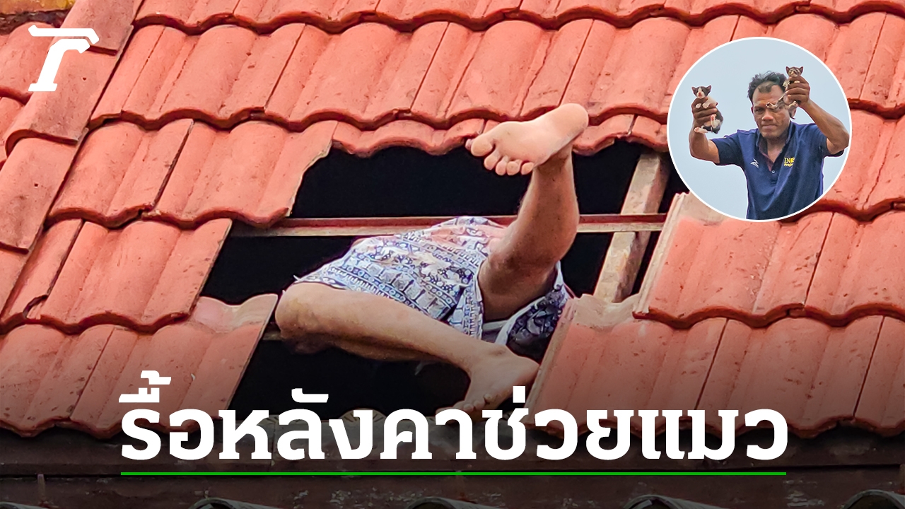 เจ้าหน้าที่กู้ภัยรื้อหลังคา ตัดคานเหล็ก ช่วยเหลือ 4 ลูกแมว ที่แม่มาคลอดไว้บริเวณบ้าน หลังเดินซนจนเข้าไปติดอยู่ในนั้นออกไม่ได้ ร้องเสียงระงม เจ้าของบ้านบอกจากนี้คงต้องเลี้ยงไว้