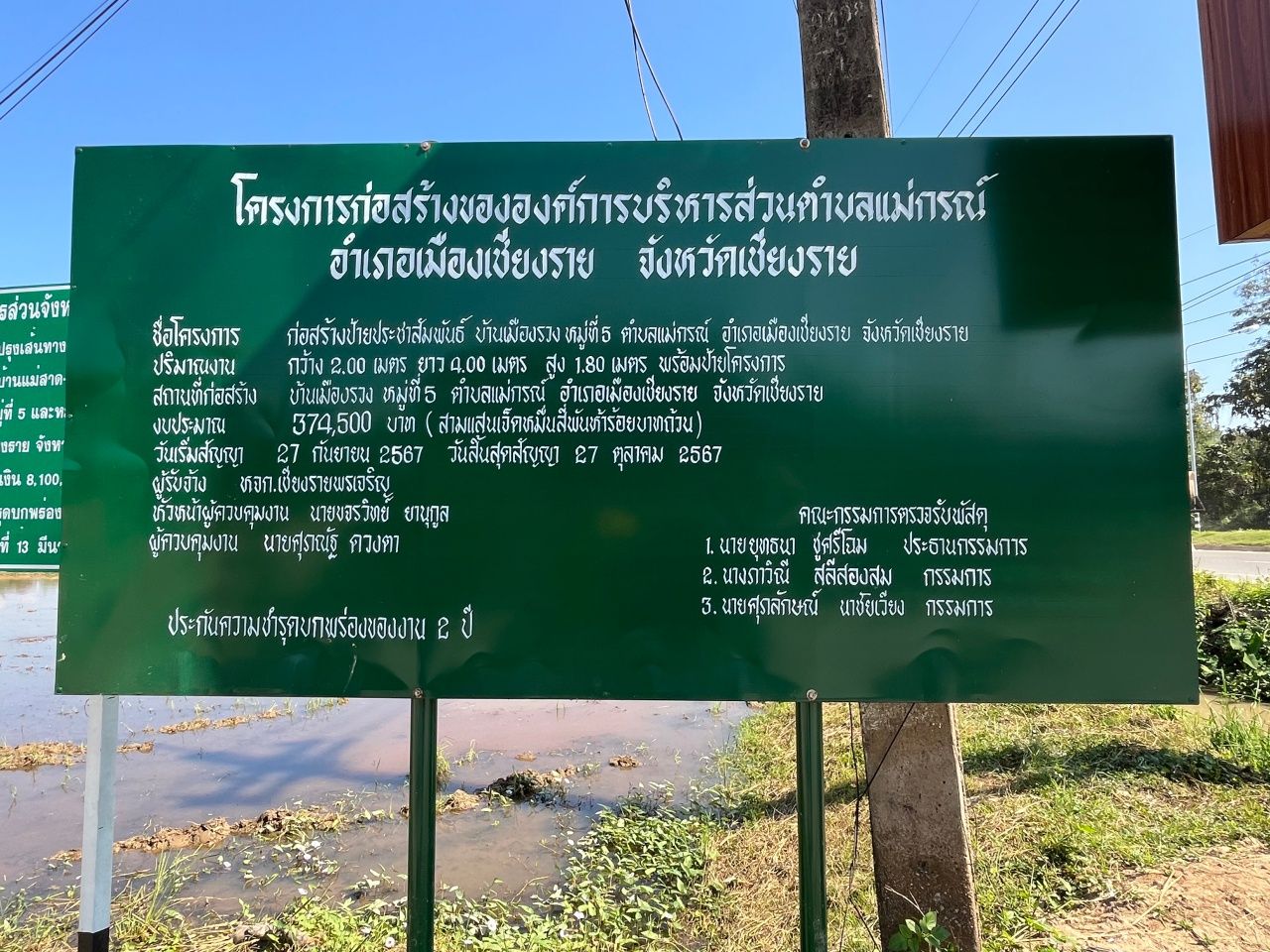 นายก อบต.แม่กรณ์ แจงดราม่าเพจปูดเรื่องสร้างป้ายราคาแพง 374,500 บาท ซ้ำจ้างญาติทำ ชี้เป็นเรื่องการเมือง ยินดีให้ตรวจสอบ