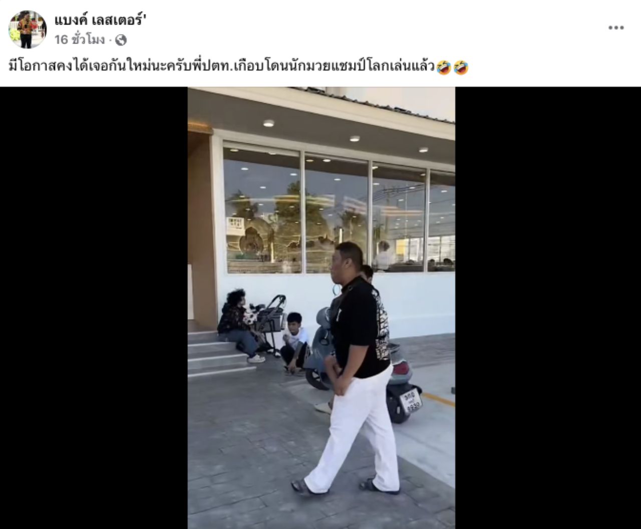 นอกจากนี้ ยังมีคลิปที่ถ่ายไว้กับกลุ่มเพื่อน ซึ่งระบุข้อความว่า "มีโอกาสคงได้เจอกันใหม่นะครับพี่ปตท.เกือบโดนนักมวยแชมป์โลกเล่นแล้ว"